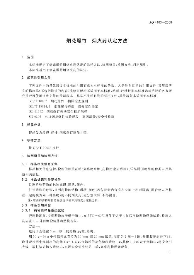AQ/T 4103-2008 烟花爆竹 烟火药认定方法