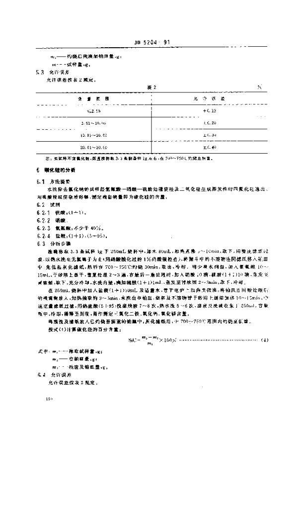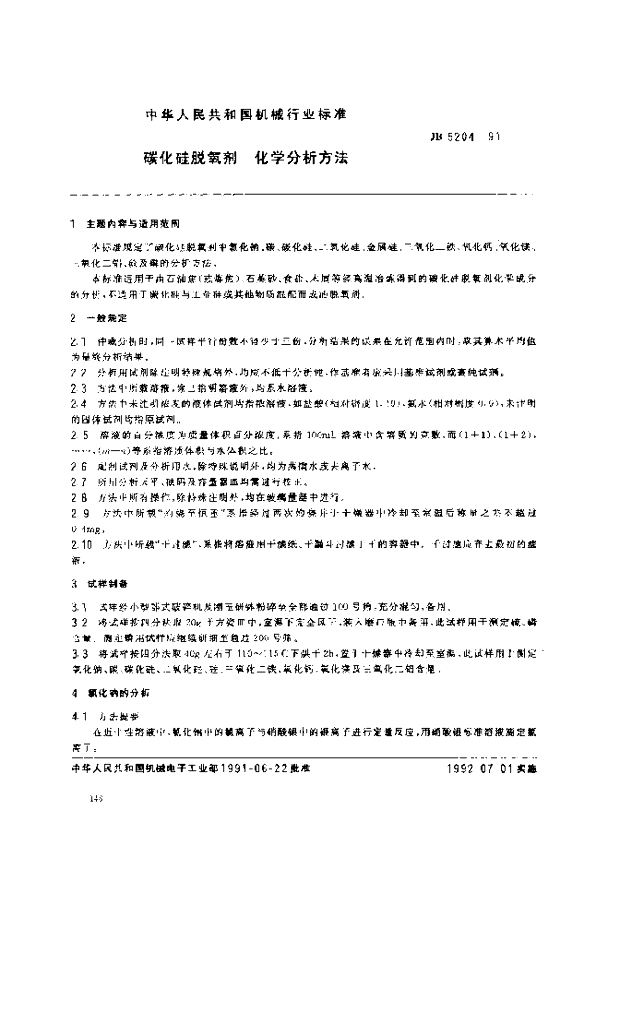 JB 5204-1991 碳化硅脱氧剂 化学分析方法