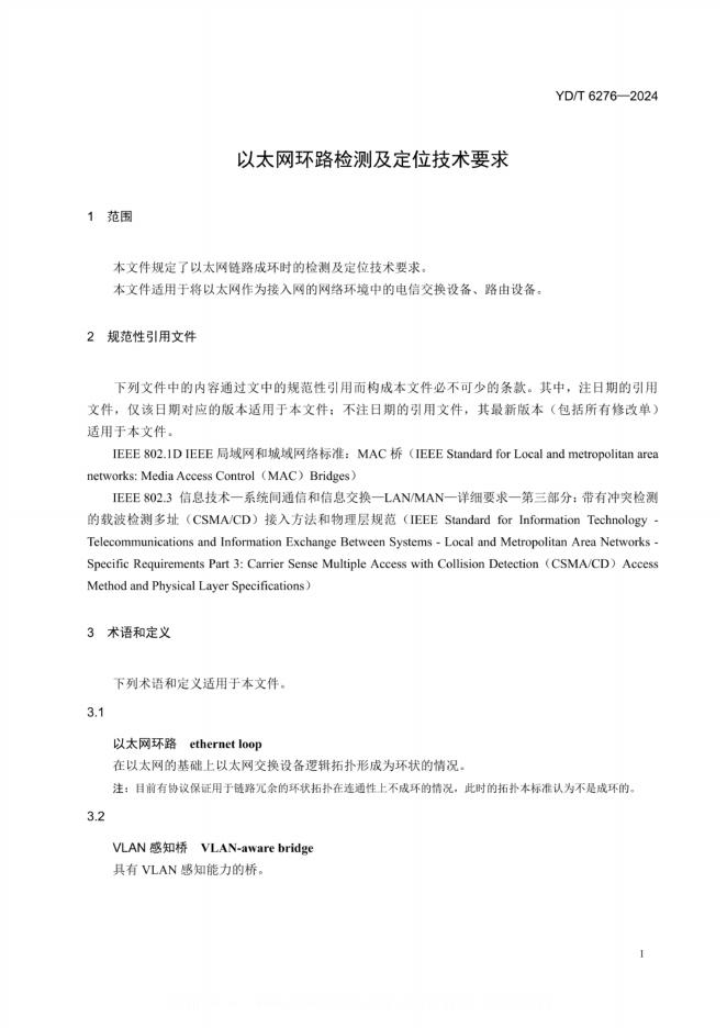 YD/T 6276-2024 以太网环路检测及定位技术要求