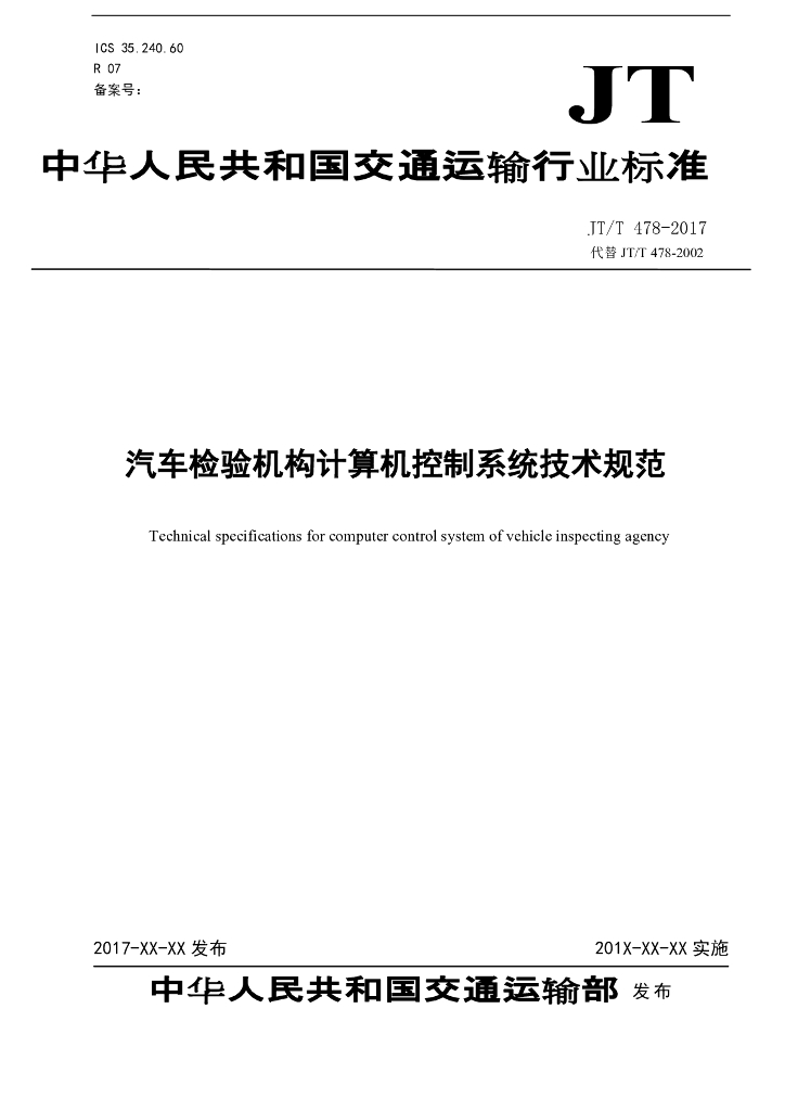 交通运输部公路科学研究院、深圳市安车检测股份有限公司、华南理工大学计算机应用工程研究所、石家庄华燕交通科技有限公司、成都成保股份发展有限公司、浙江江兴汽车检测设备有限公司、济南新凌志检测技术有限公司、合肥市强科达科技开发有限公司