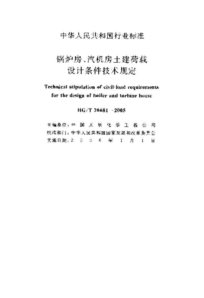 HG/T 20681-2005 锅炉房、汽机房土建荷载设计条件技术规定