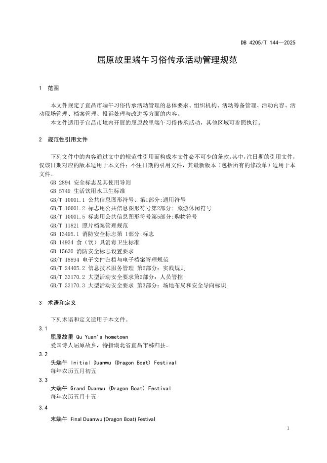 DB4205/T 144-2025 屈原故里端午习俗传承活动管理规范