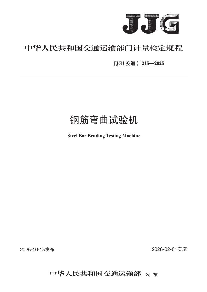 JJG(交通)215-2025 钢筋弯曲试验机