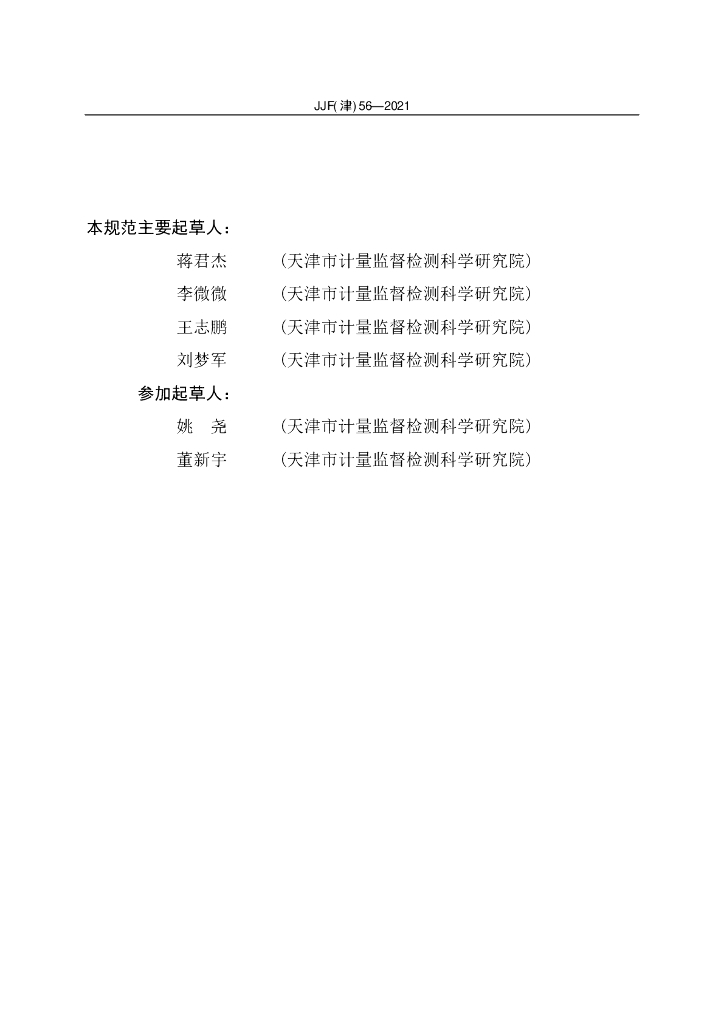 蒋君杰(天津市计量监督检测科学研究院)、李微微(天津市计量监督检测科学研究院)、王志鹏(天津市计量监督检测科学研究院)、刘梦军(天津市计量监督检测科学研究院)、姚尧(天津市计量监督检测科学研究院)、董新宇(天津市计量监督检测科学研究院)