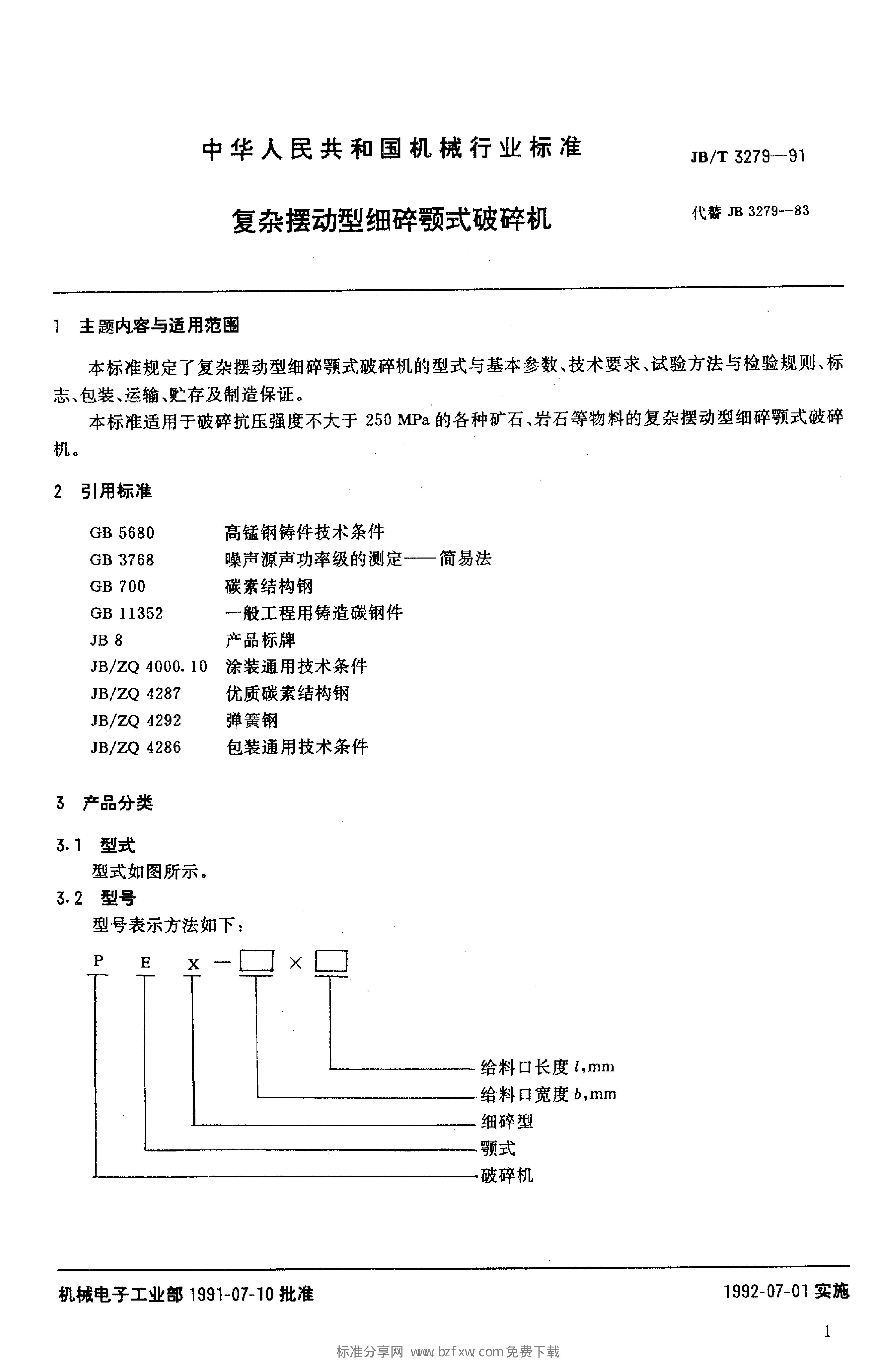 JB/T 3279-1991 复杂摆动型细碎颚式破碎机