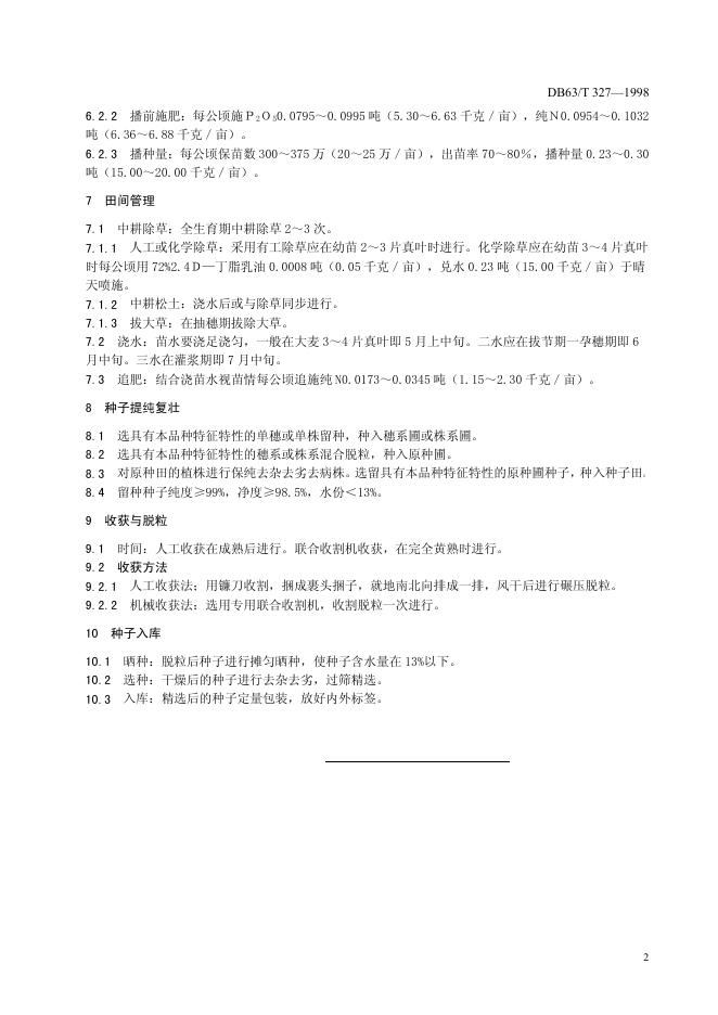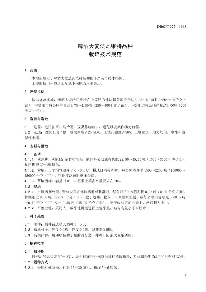 DB63/T 327-1998 啤酒大麦法瓦维特品种栽培技术规范