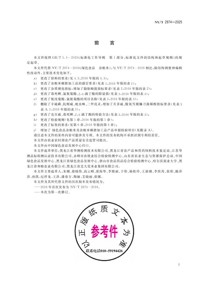 - 代替标准:NY/T 2974-2016