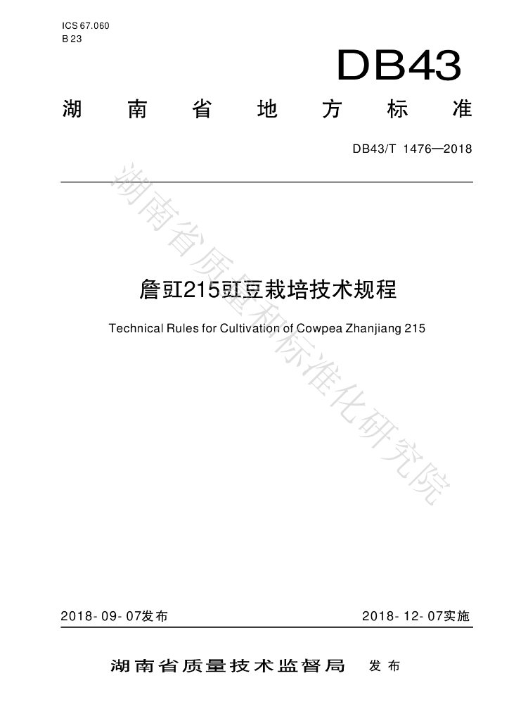 DB43/T 1476-2018 詹豇215豇豆栽培技术规程