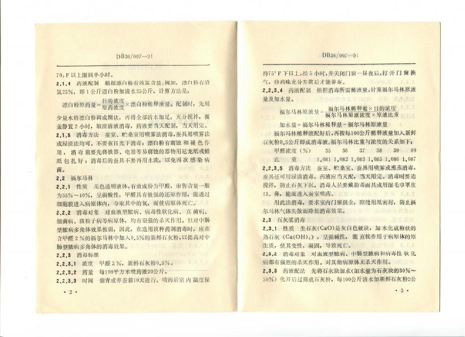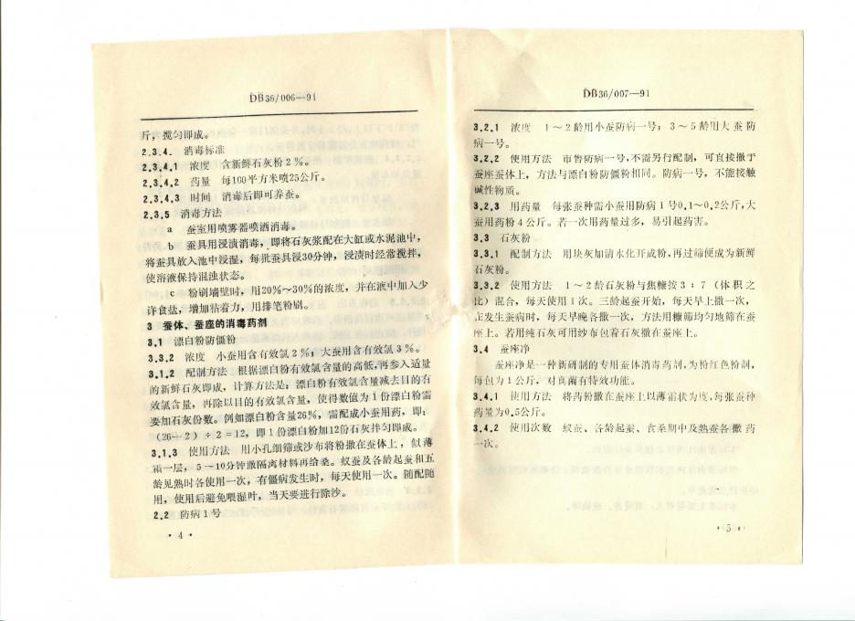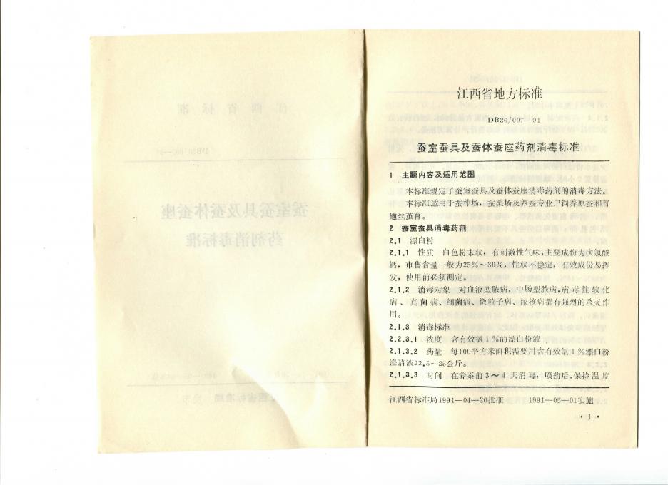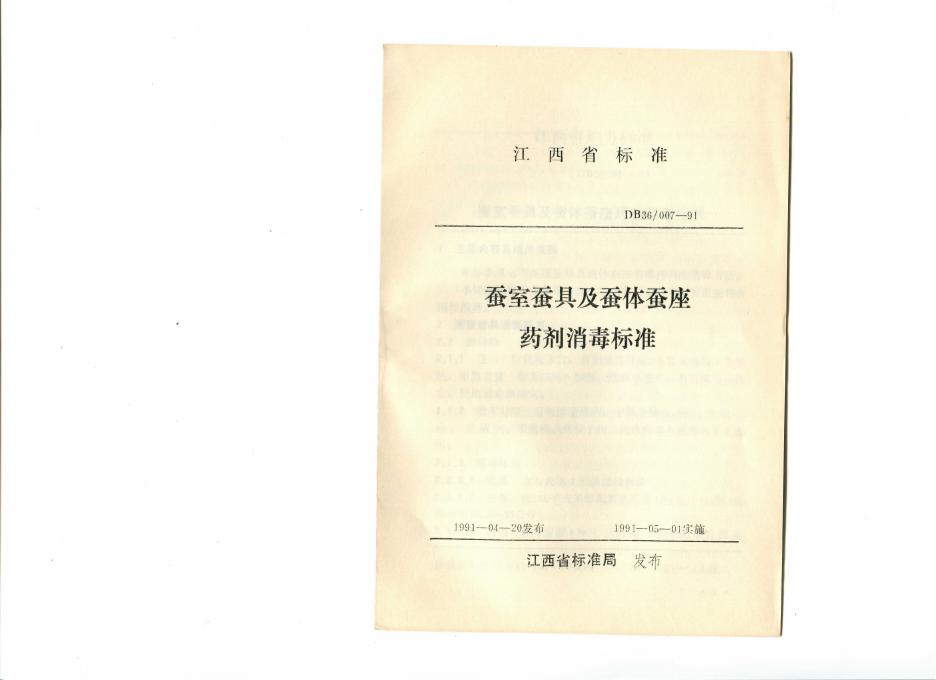DB36/ 007-1991 蚕室蚕具及蚕体蚕座药剂消毒标准