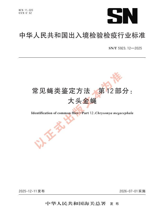 SN/T 5923.12-2025 常见蝇类鉴定方法 第12部分:大头金蝇