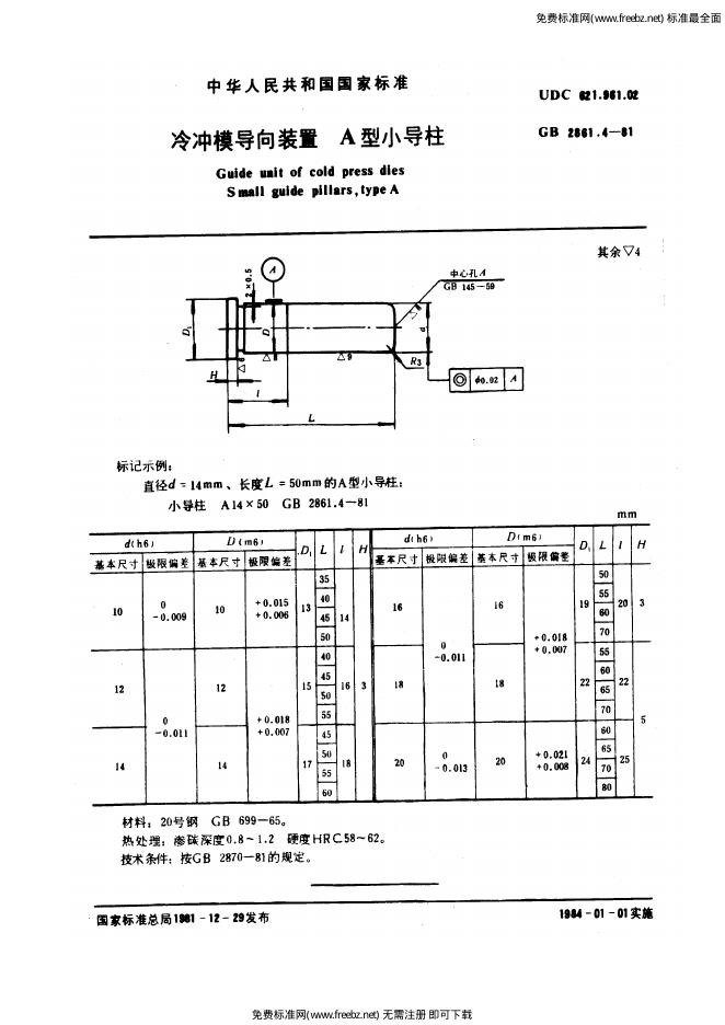 GB/T 2861.4-1981 冷冲模导向装置 A型小导柱
