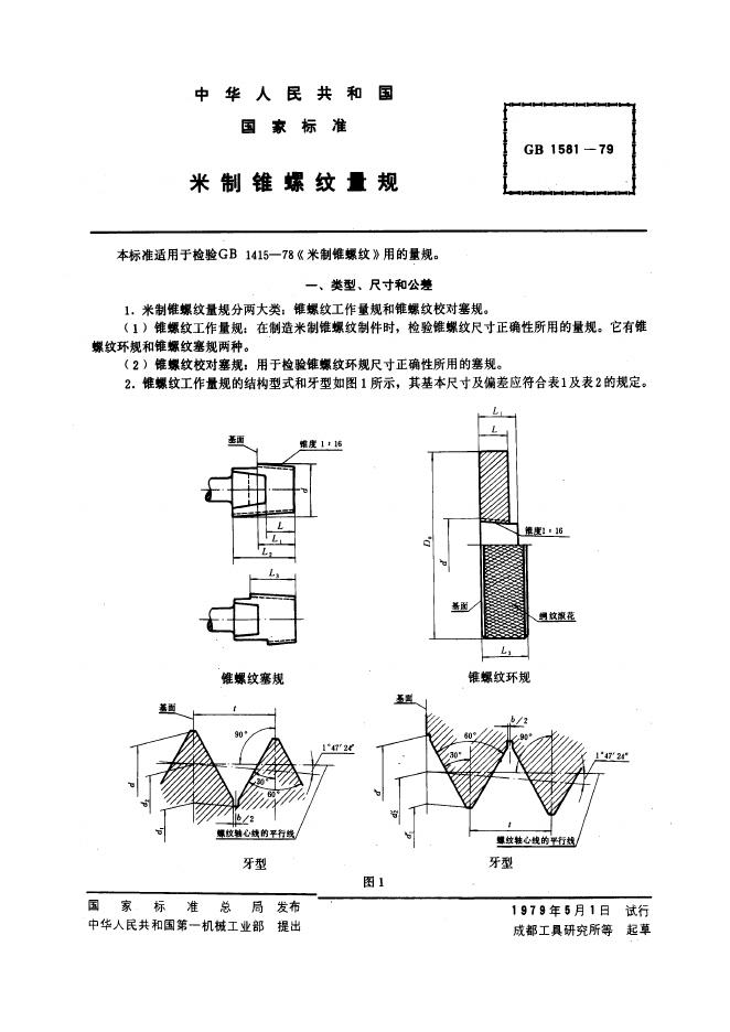 GB/T 1581-1979 米制锥螺纹量规