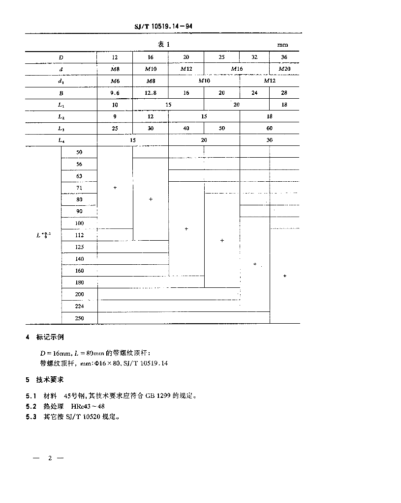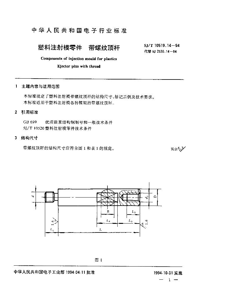 SJ/T 10519.14-1994 塑料注射模零件 带螺纹顶杆