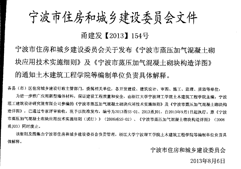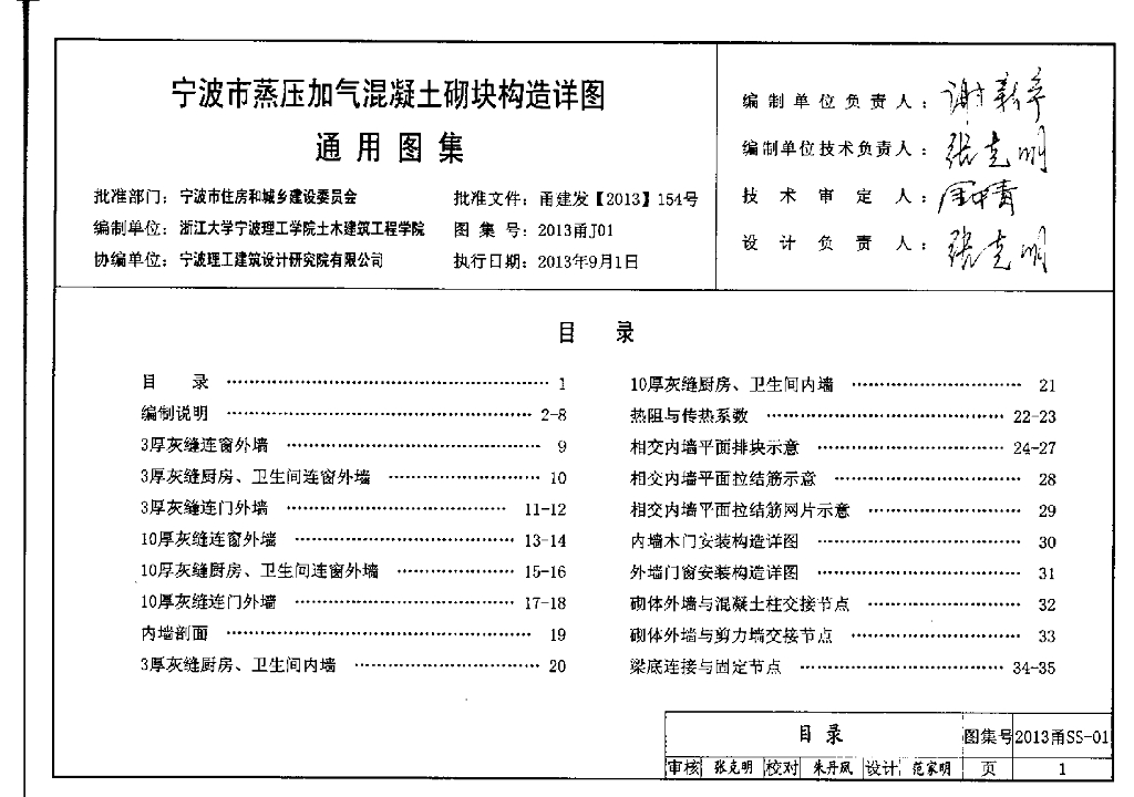 2013甬J01 宁波市蒸压加气混凝土砌块构造详图通用图集