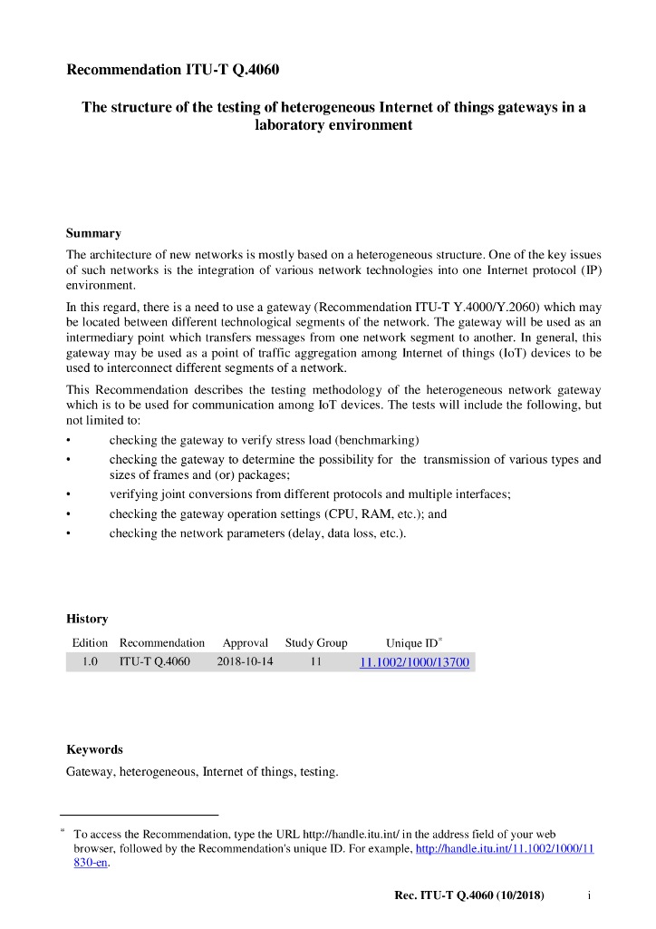 ITU-T Q.4060-2018 实验室环境中异构物联网网络测试的结构
