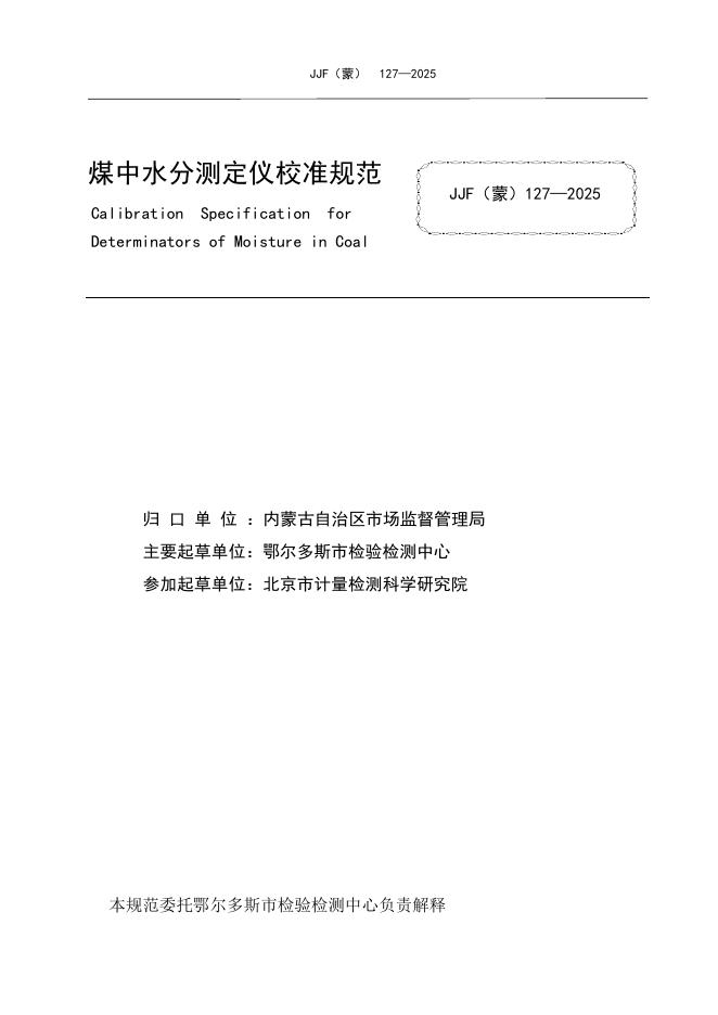 JJF(蒙)127-2025 煤中水分测定仪校准规范
