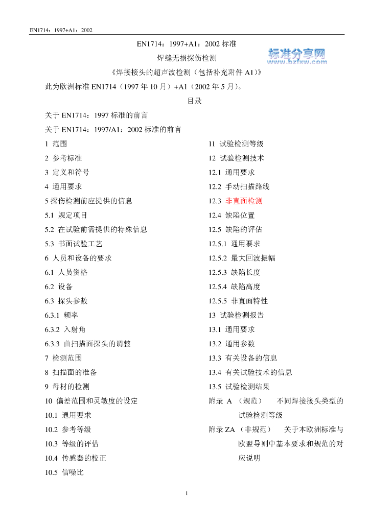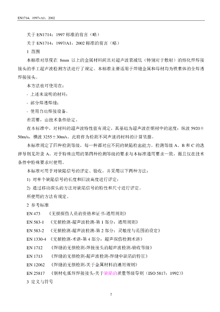 DIN EN 1714-1997(2002) 焊接接头的超声波检测(中文版)