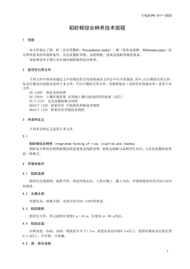 T/QJCIPA 017-2025 稻虾蛭综合种养技术规程