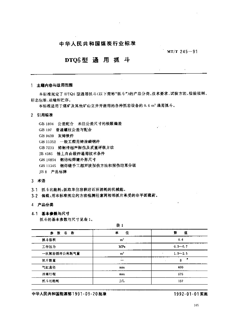 MT/T 245-1991 DTQ6型通用抓斗