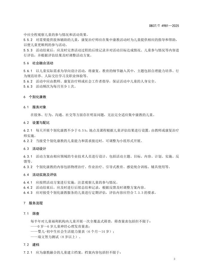 DB37/T 4981-2025 儿童福利机构康教融合服务规范