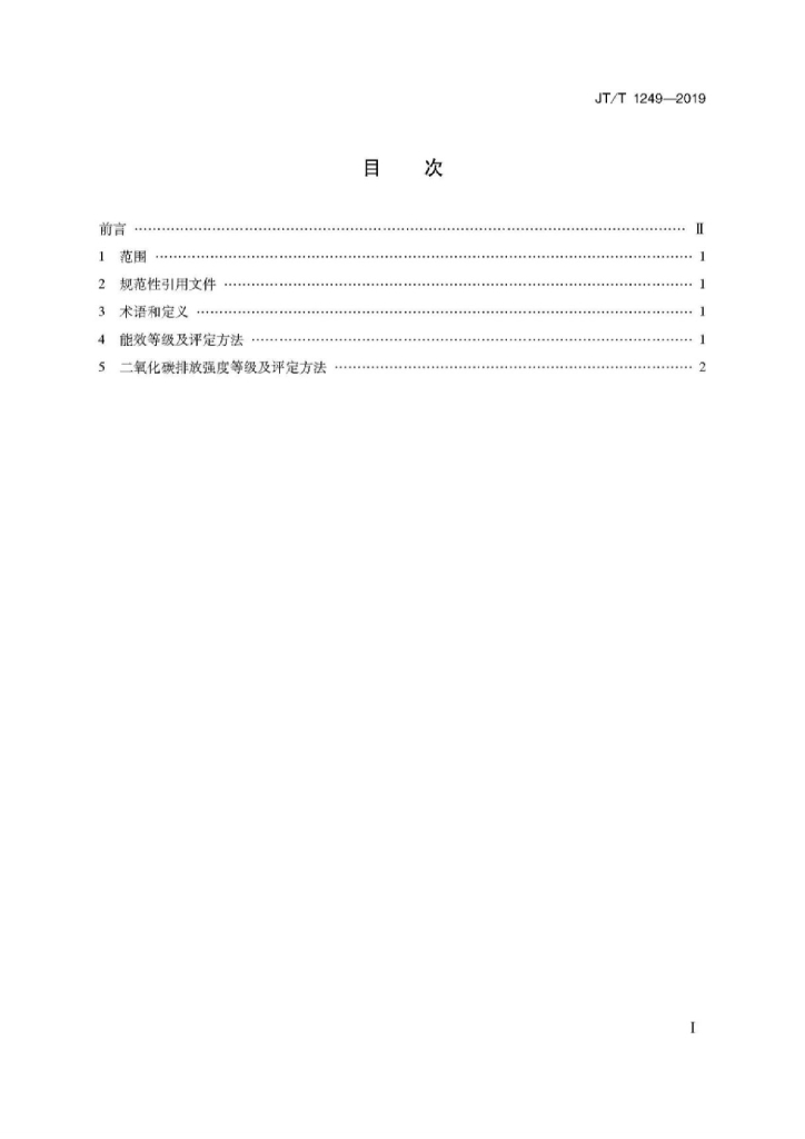 JT/T 1249-2019 营运客车能效和二氧化碳排放强度等级及评定方法