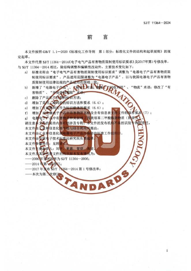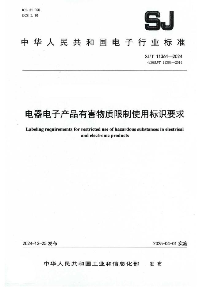 SJ/T 11364-2024 电器电子产品有害物质限制使用标识要求