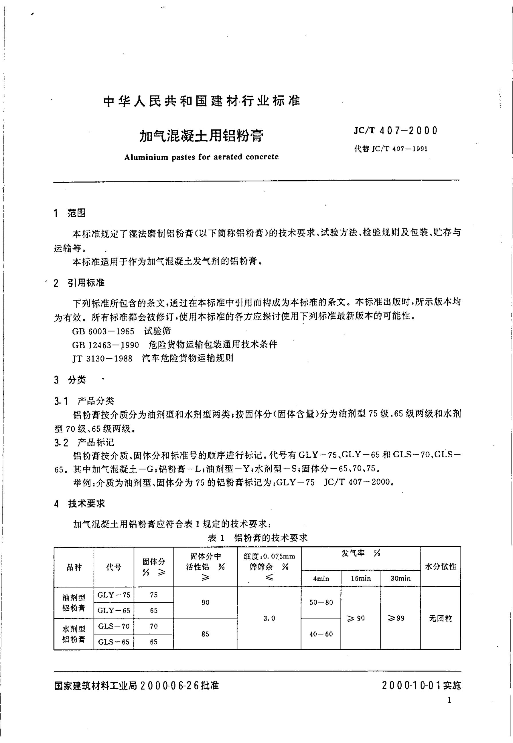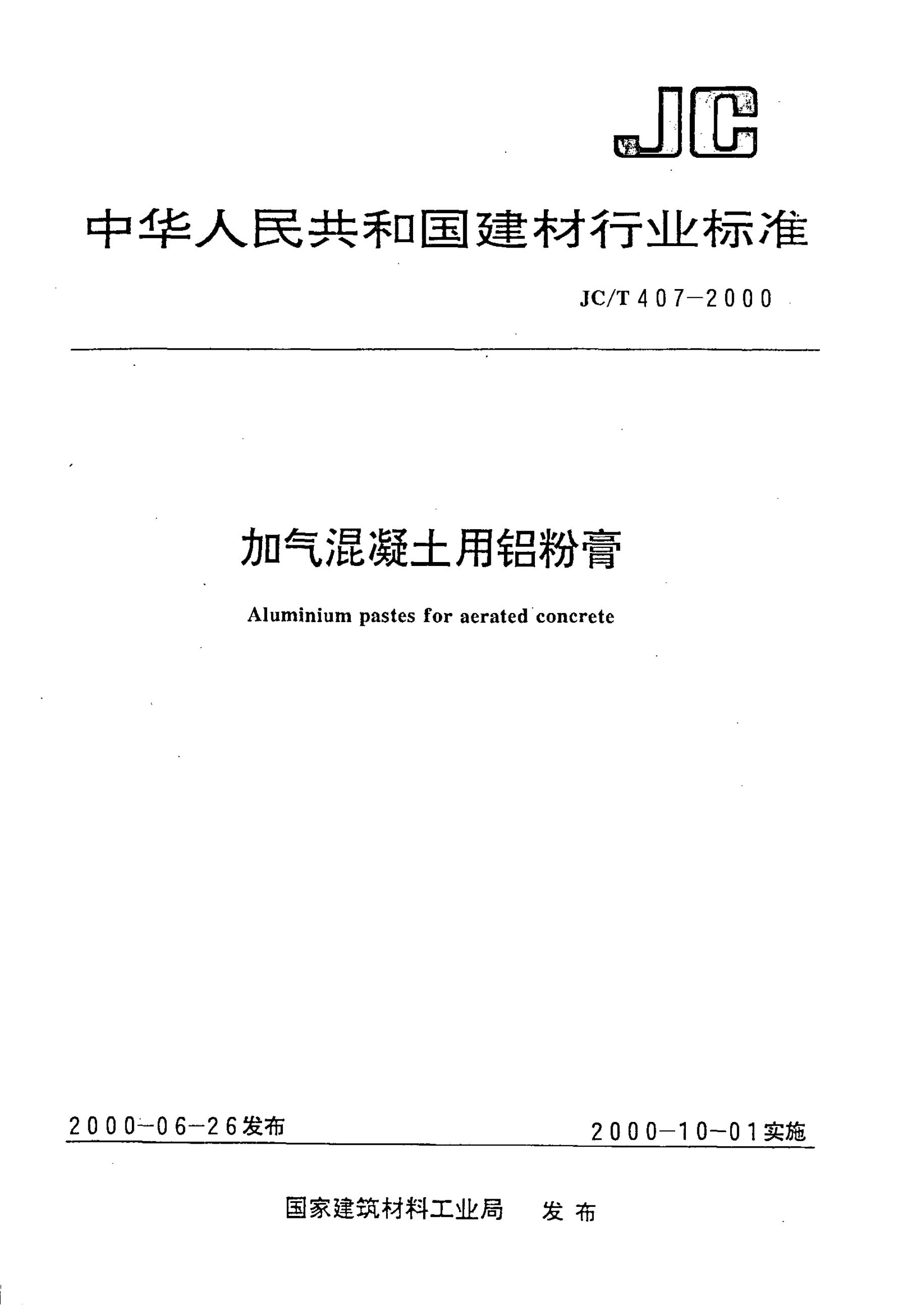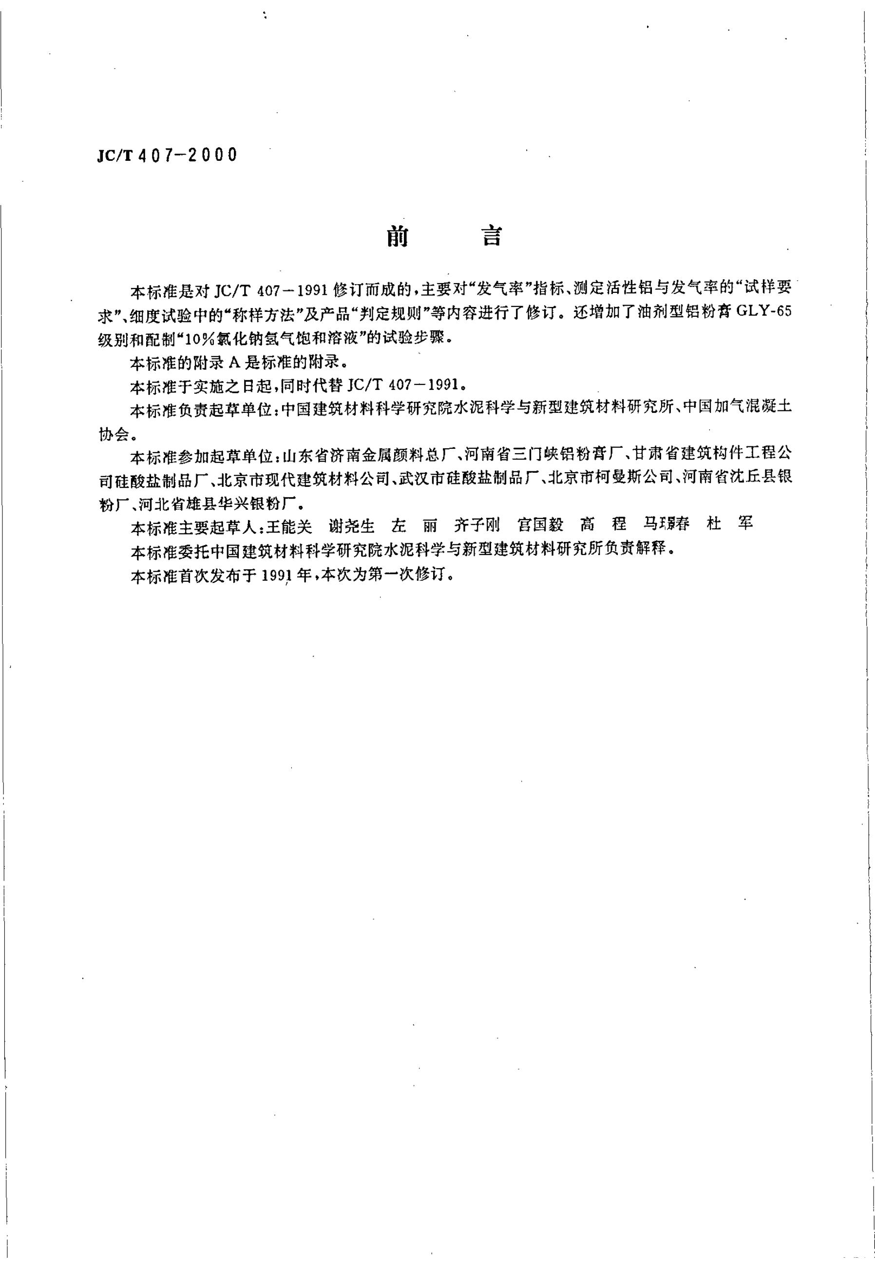 JC/T 407-1991 加气混凝土用铝粉膏