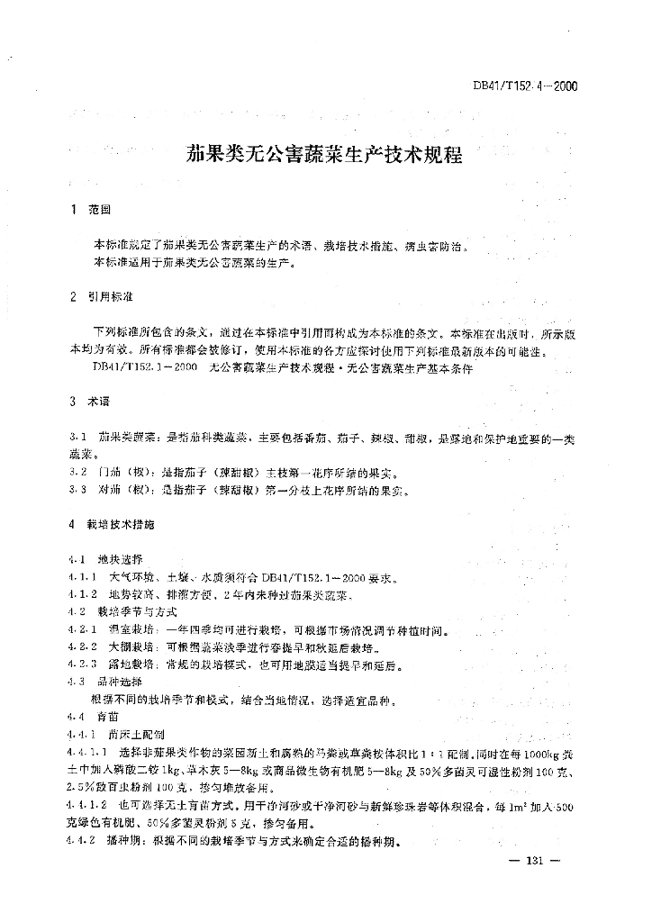 DB41/T 152.4-2000 茄果类无公害蔬菜生产技术规程