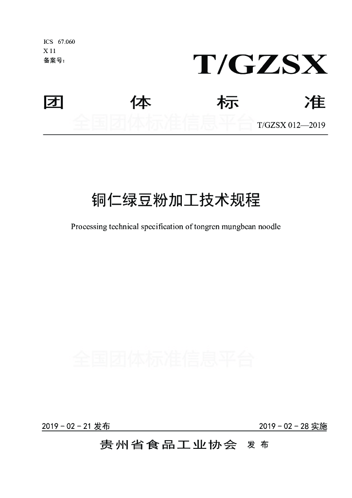 T/GZSX 012-2019 铜仁绿豆粉加工技术规程