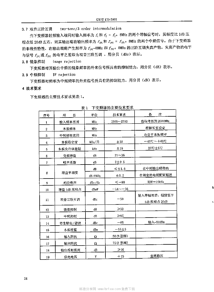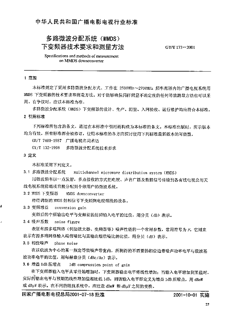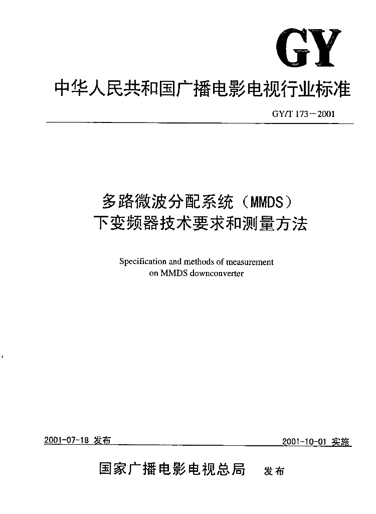 GY/T 173-2001 多路微波分配系统( MMDS)下变频器技术要求和测量方法