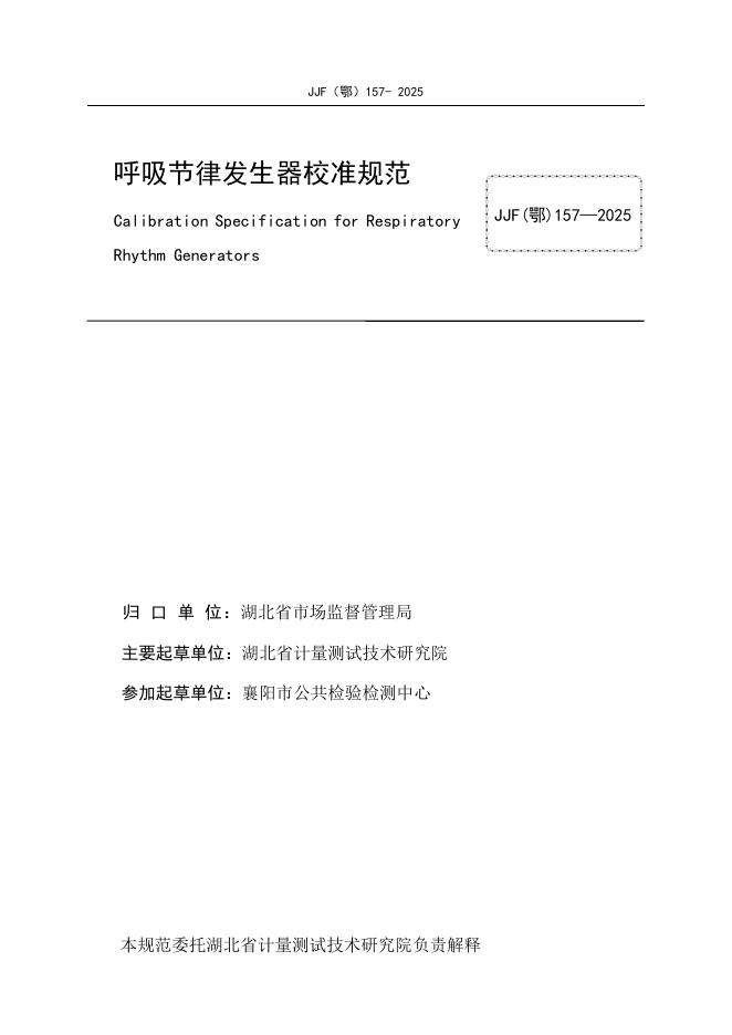 JJF(鄂)157-2025 呼吸节律发生器校准规范