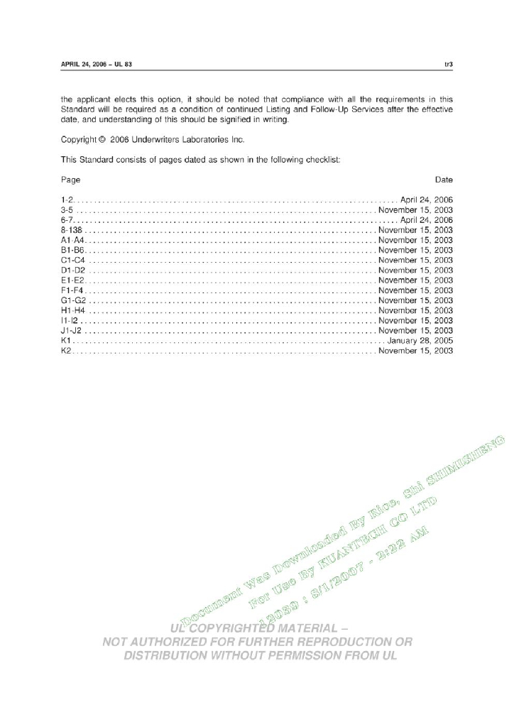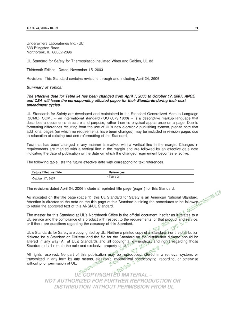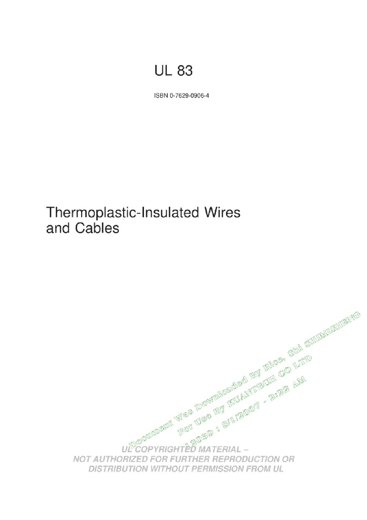 UL 83-2006 (ISBN 0-7629-0906-4) 热塑性绝缘电线和电缆