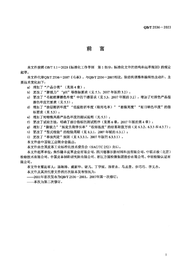 焦作隆丰皮草企业有限公司、四川德赛尔新材料科技有限公司、中联品检(北京)检验技术有限公司、中国皮革制鞋研究院有限公司、浙江方圆检测集团股份有限公司、中轻检验认证有限公司