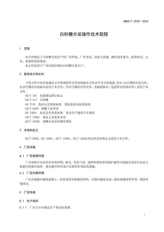 DB45/T 2939-2024 白砂糖分装操作技术规程