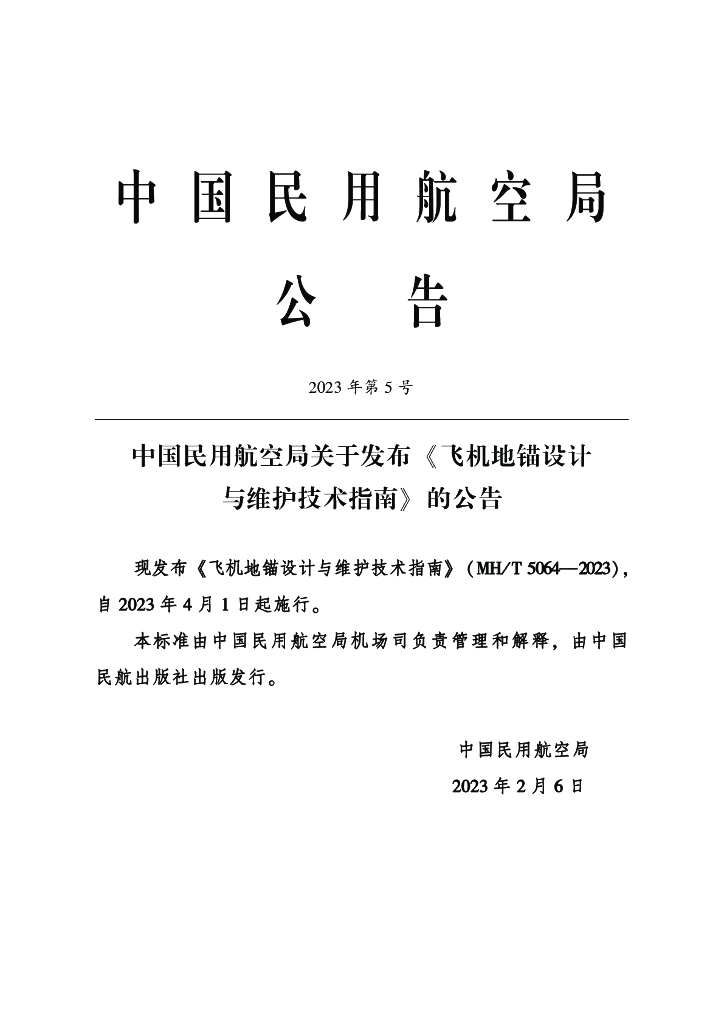 MH/T 5064-2023 飞机地锚设计与维护技术指南