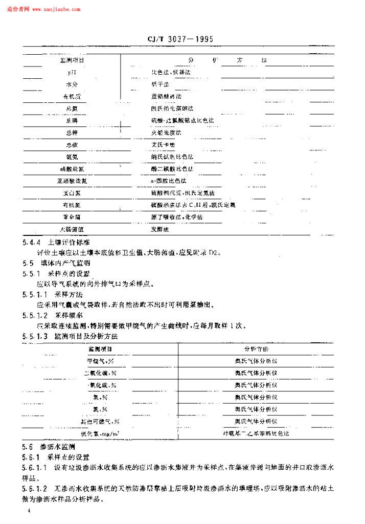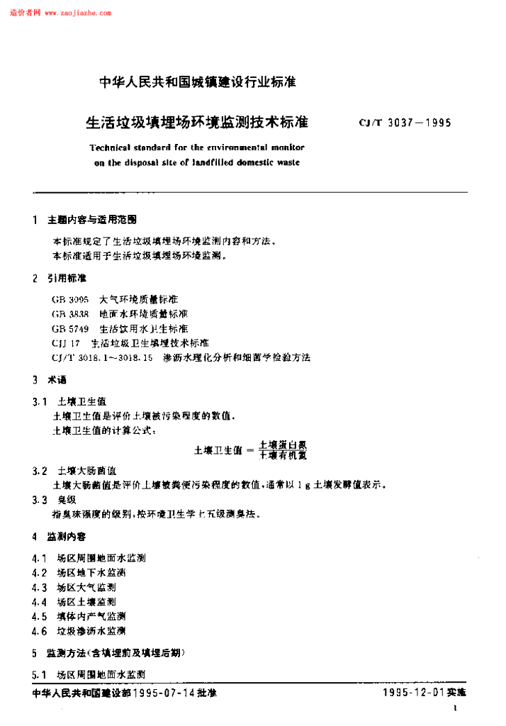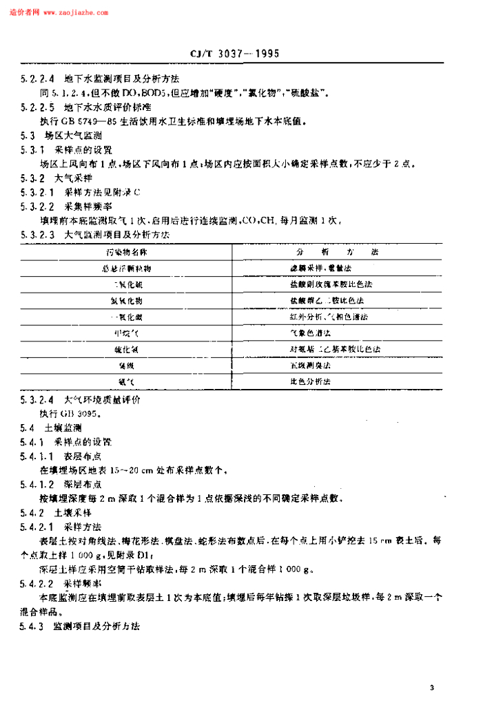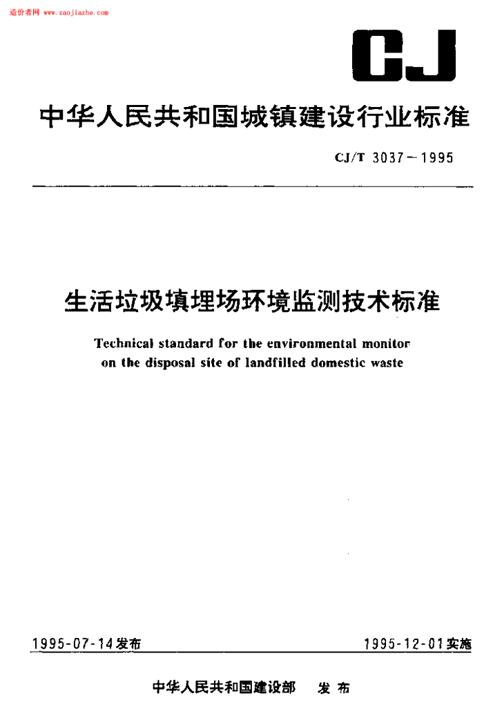 CJ/T 3037-1995 生活垃圾填埋场环境监测技术标准规范