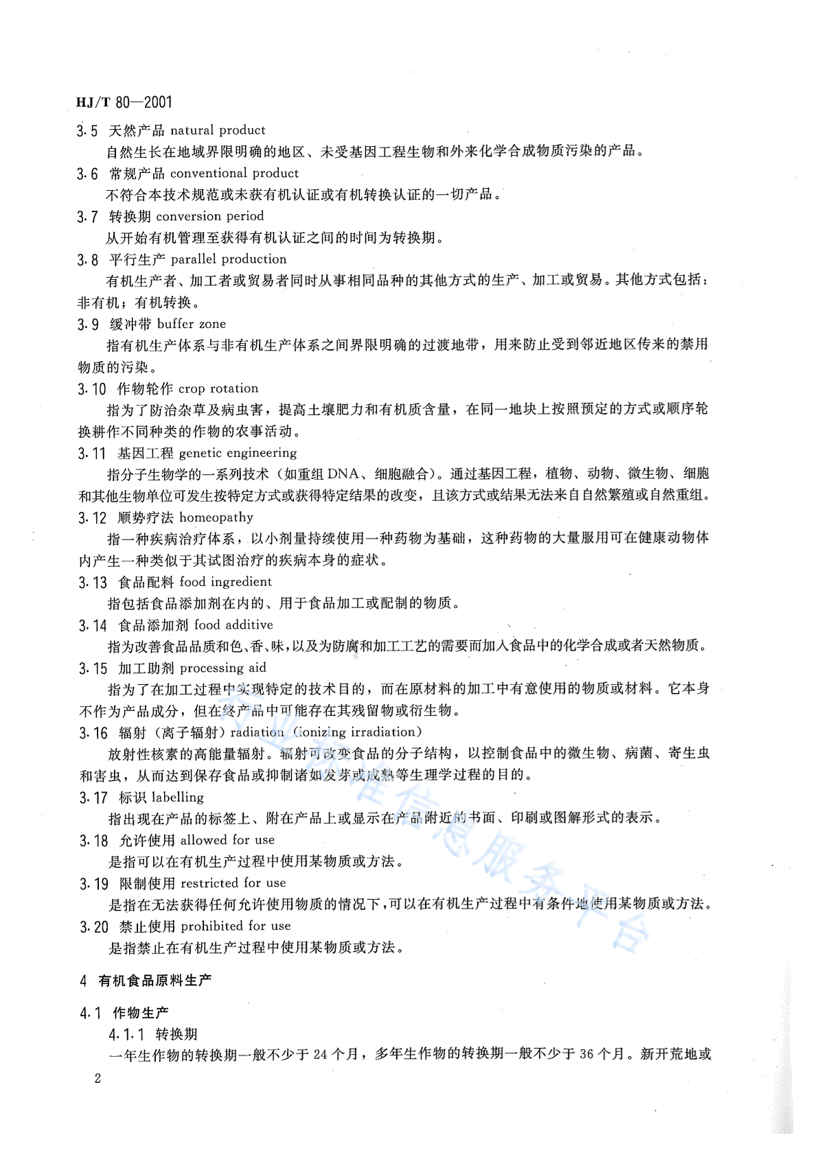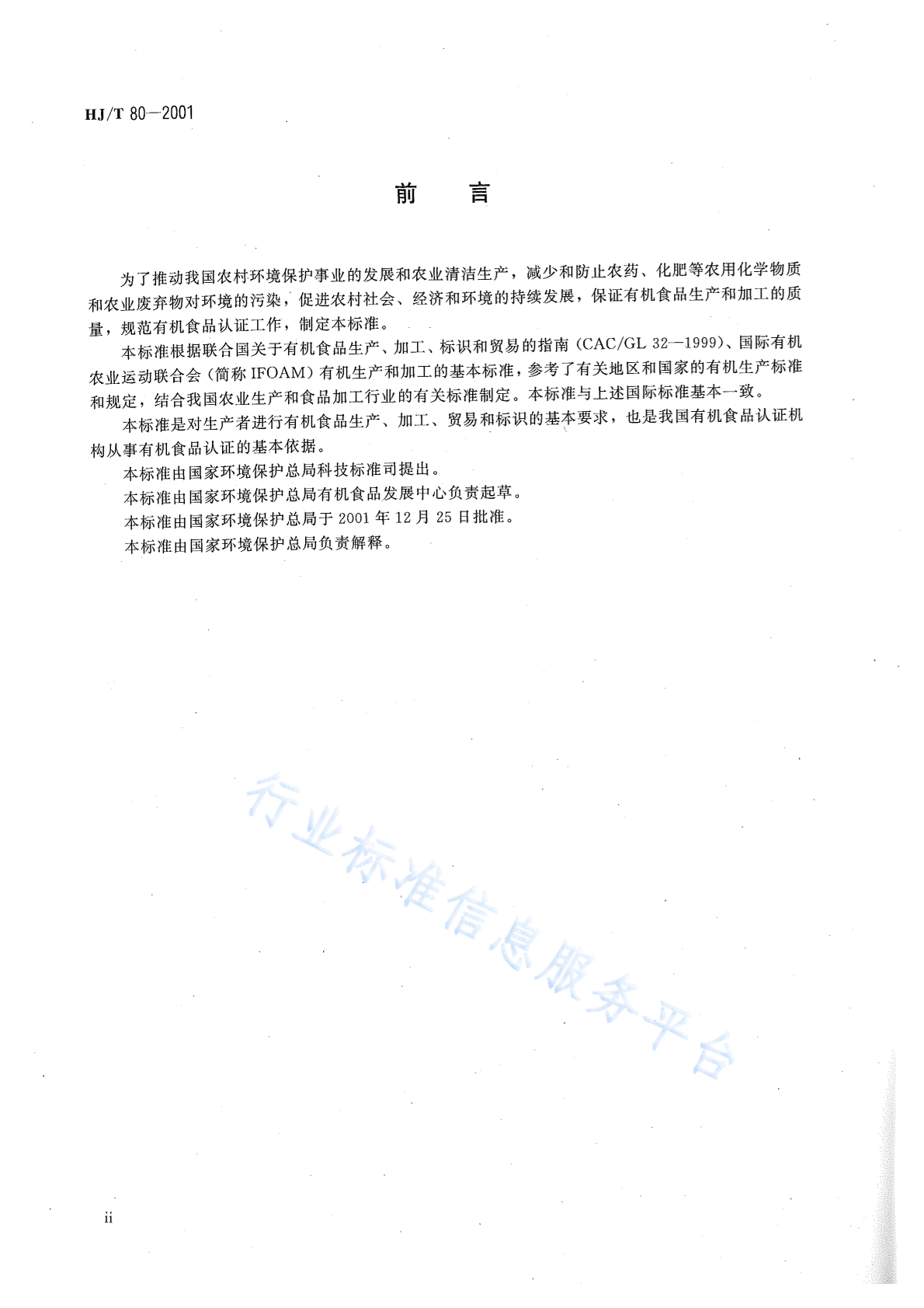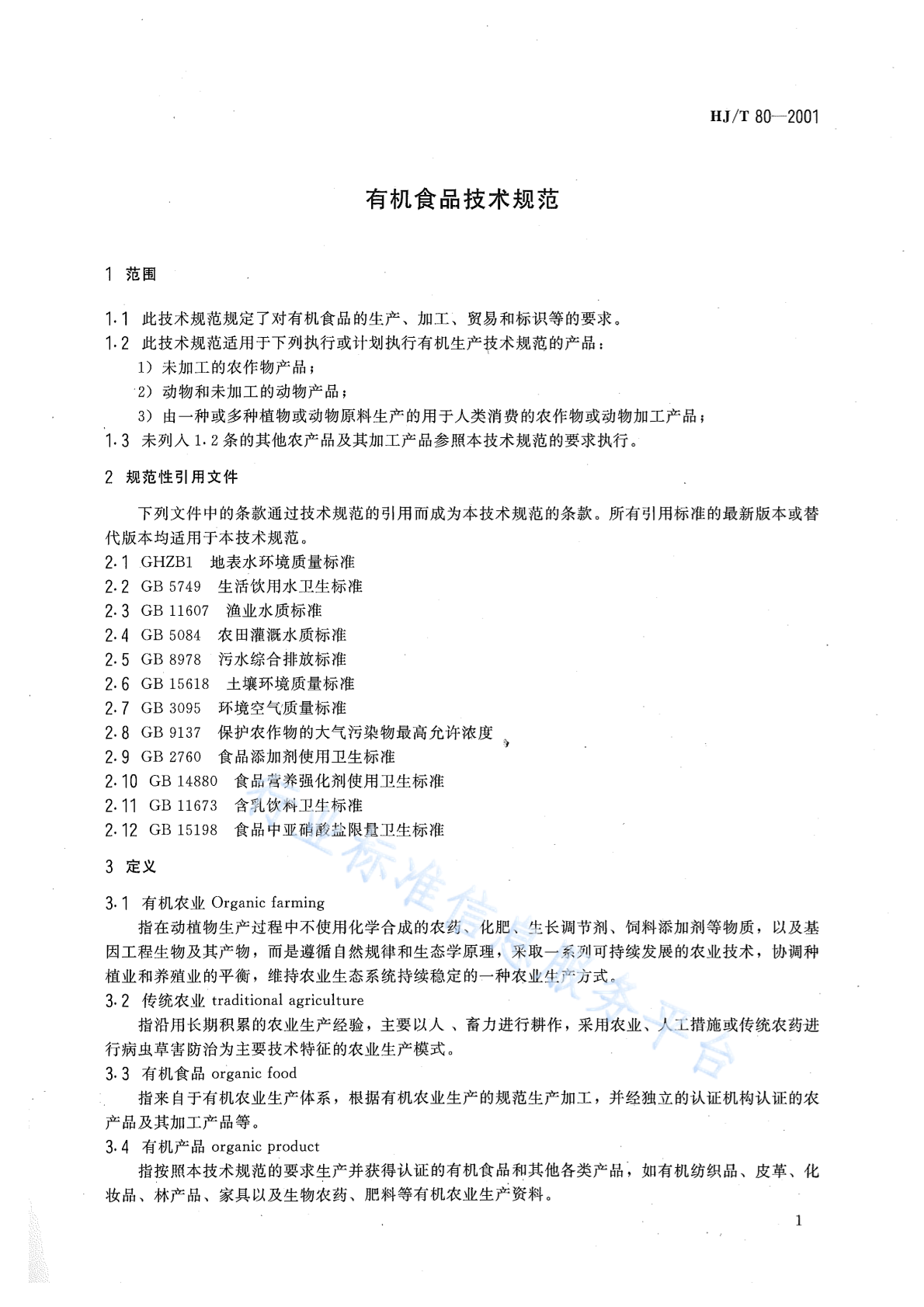 HJ/T 80-2001 有机食品技术规范
