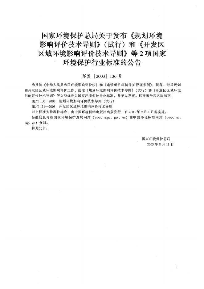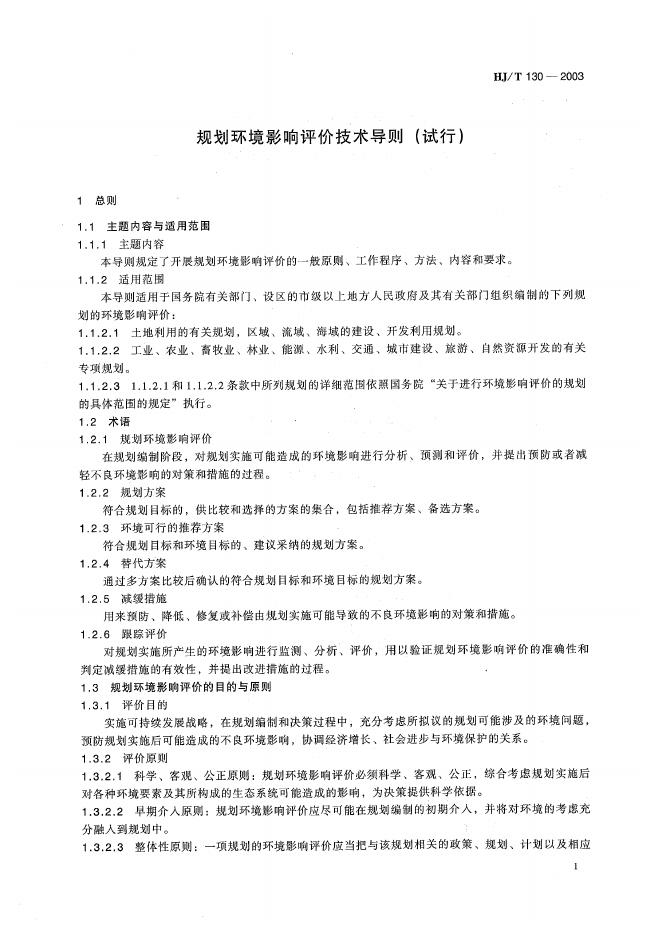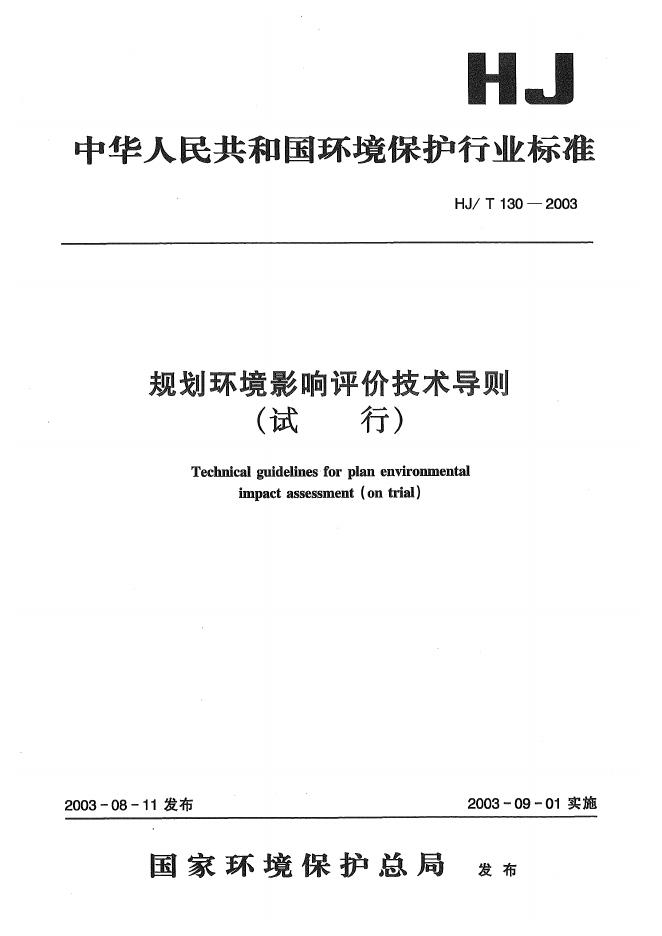 HJ/T 130-2003 规划环境影响评价技术导则(试行)