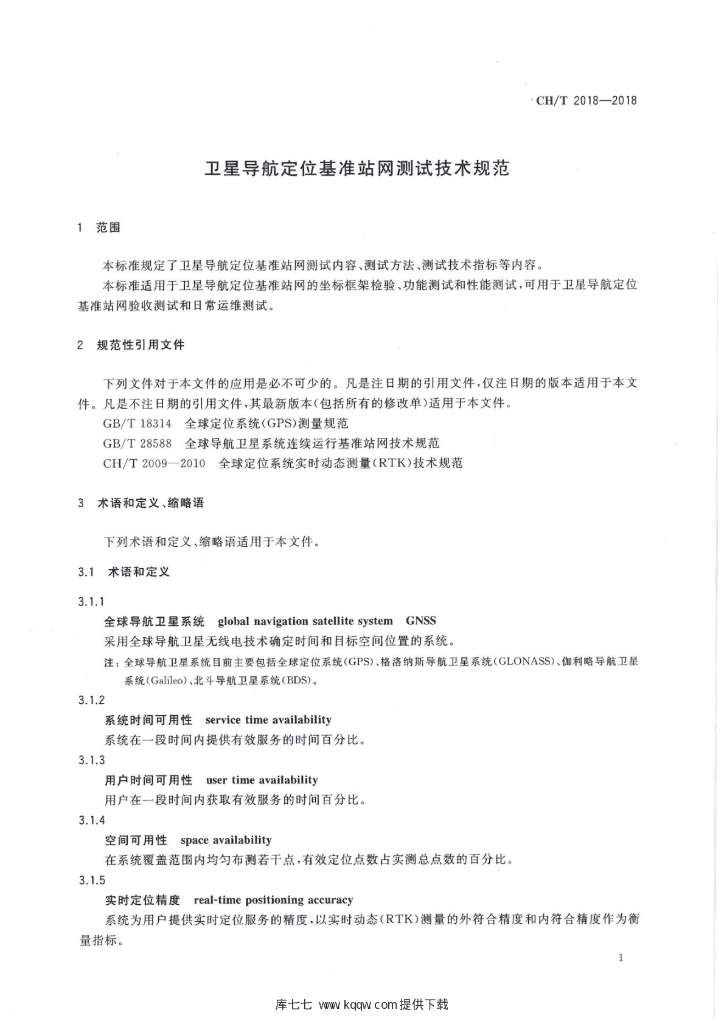 CH/T 2018-2018 卫星导航定位基准站网测试技术规范