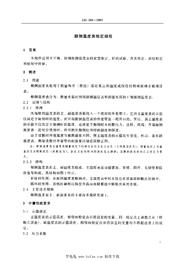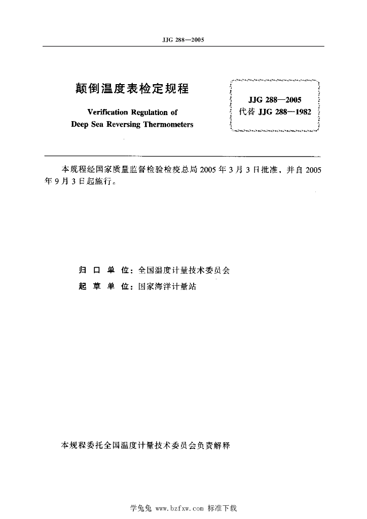 JJG 288-2005 颠倒温度表