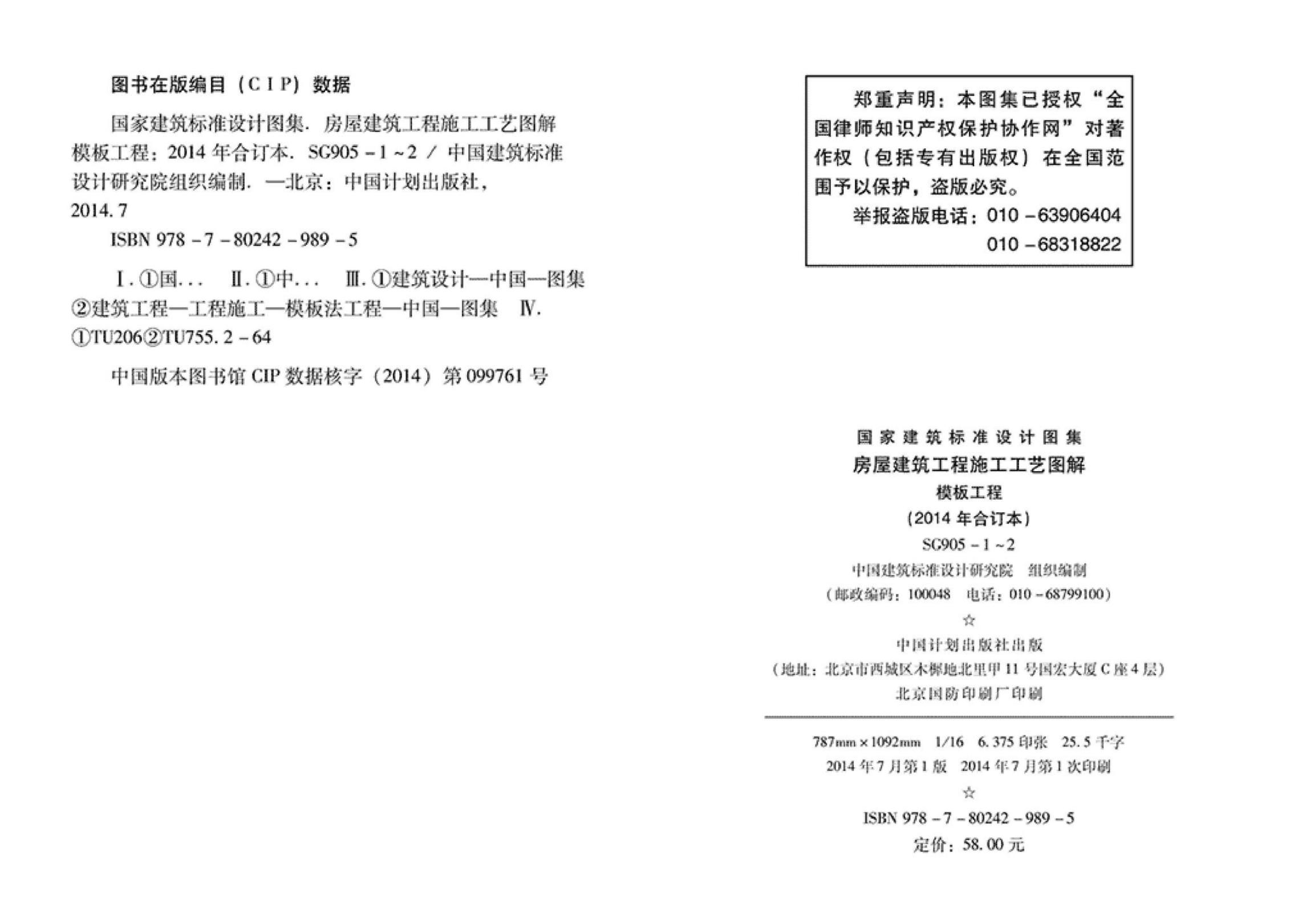 13SG905-1~2 房屋建筑工程施工工艺图解模板工程设计图集(2014年合订本)