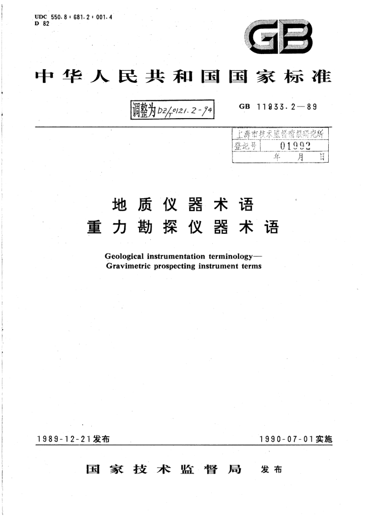 DZ/T 0121.2-1994 地质仪器术语 重力勘探仪器术语