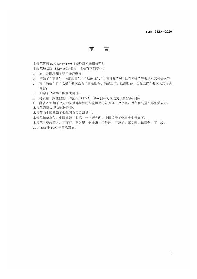 GJB 1832A-2020 爆炸螺栓通用规范