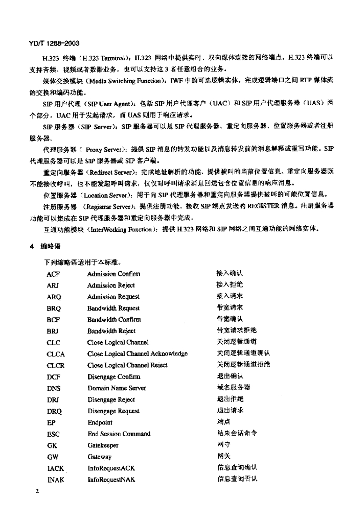 YD/T 1288-2003 基于 H.323 和基于会话初始协议(SIP)的 IP 电话互通技术要求