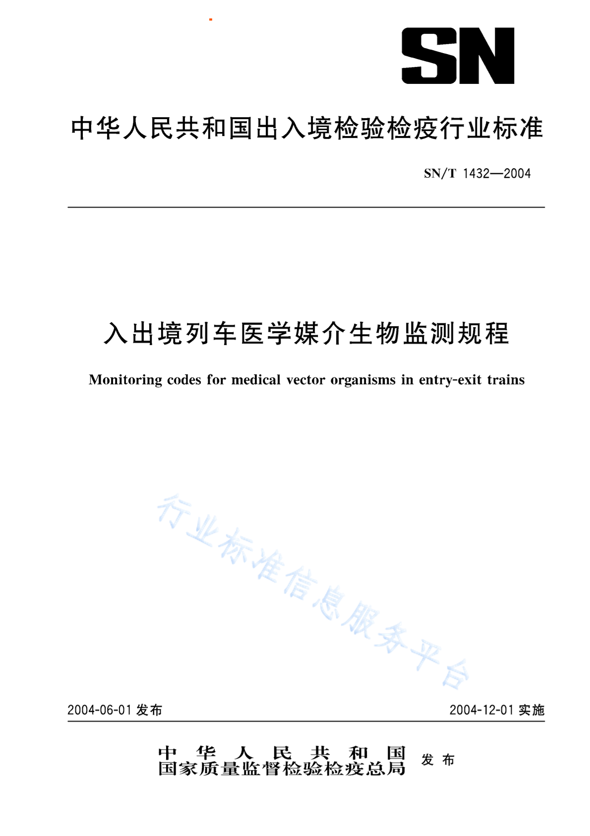 SN/T 1432-2004 入出境列车医学媒介生物监测规程