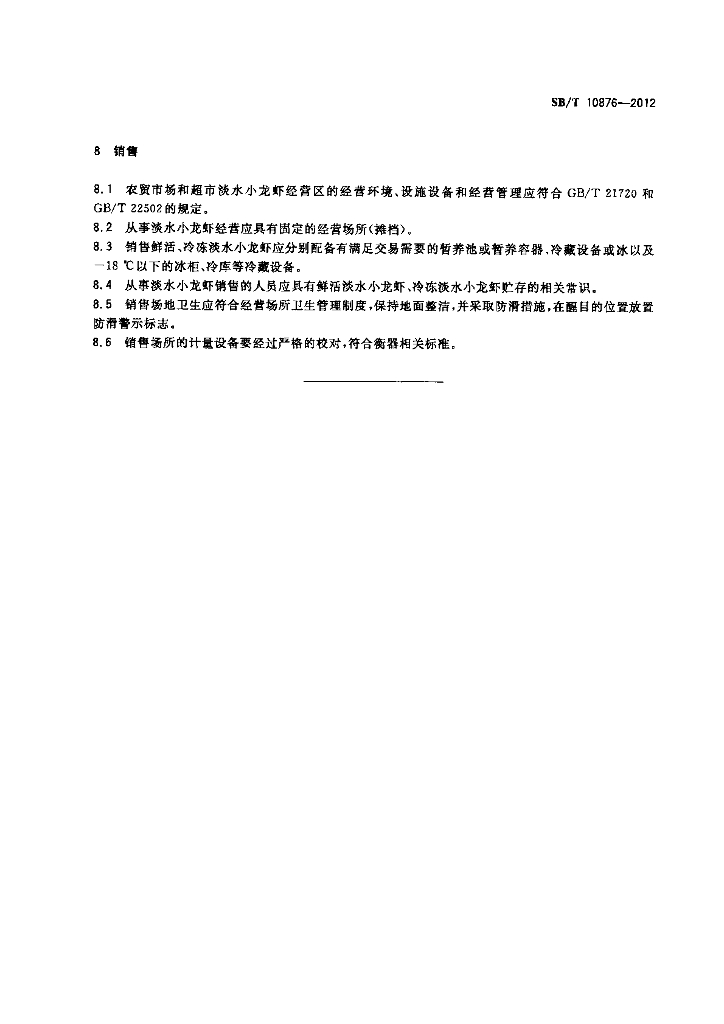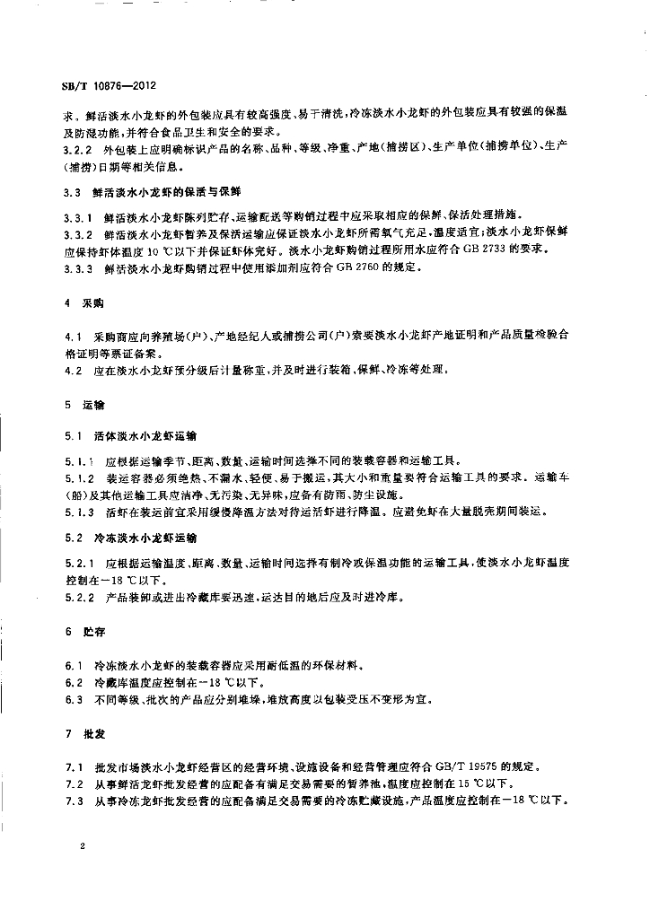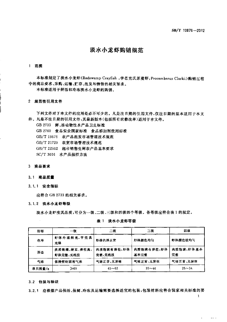 SB/T 10876-2012 淡水小龙虾购销规范