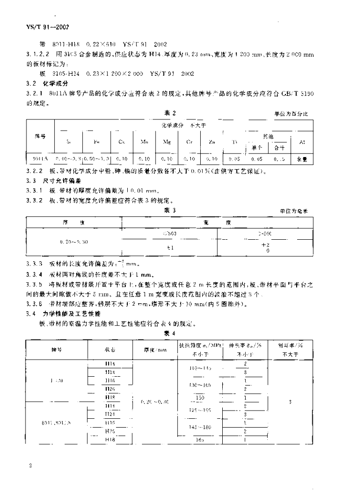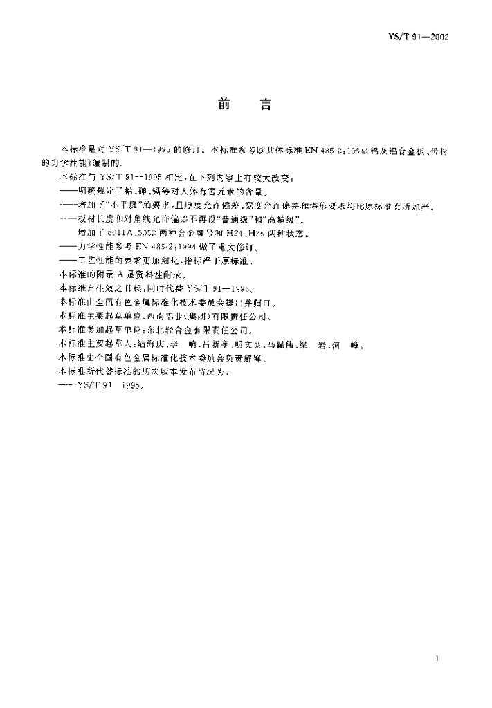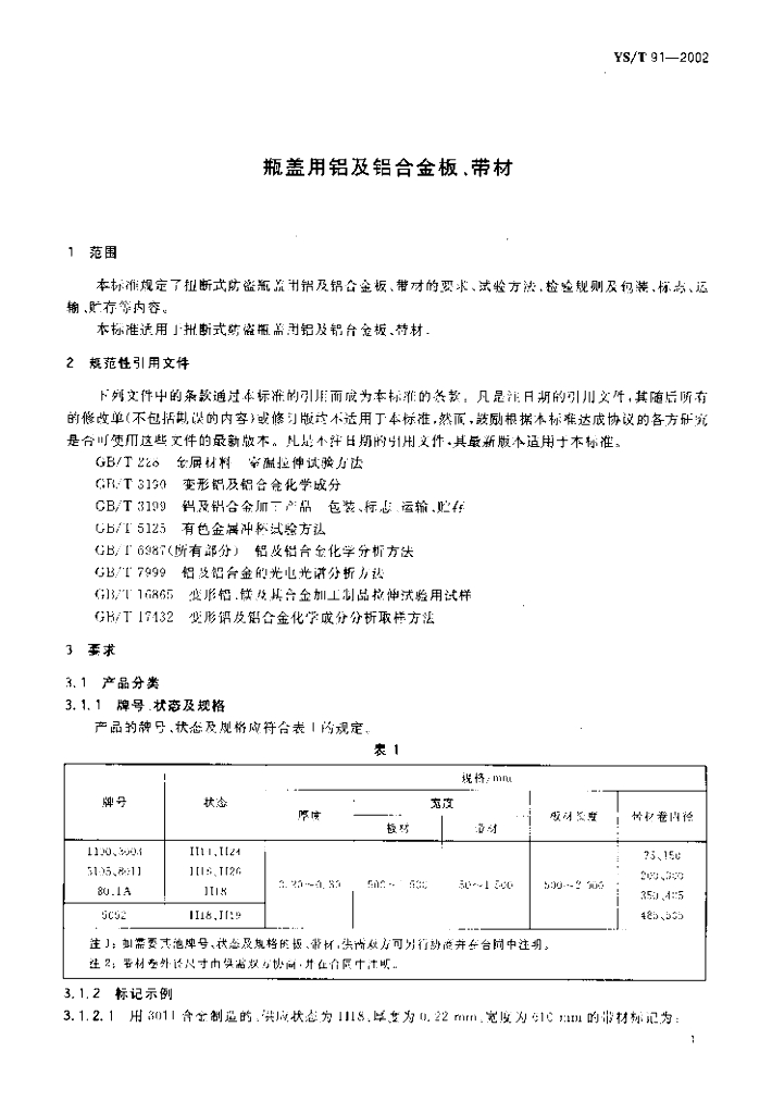 YS/T 91-2002 瓶盖用铝及铝合金板、带材