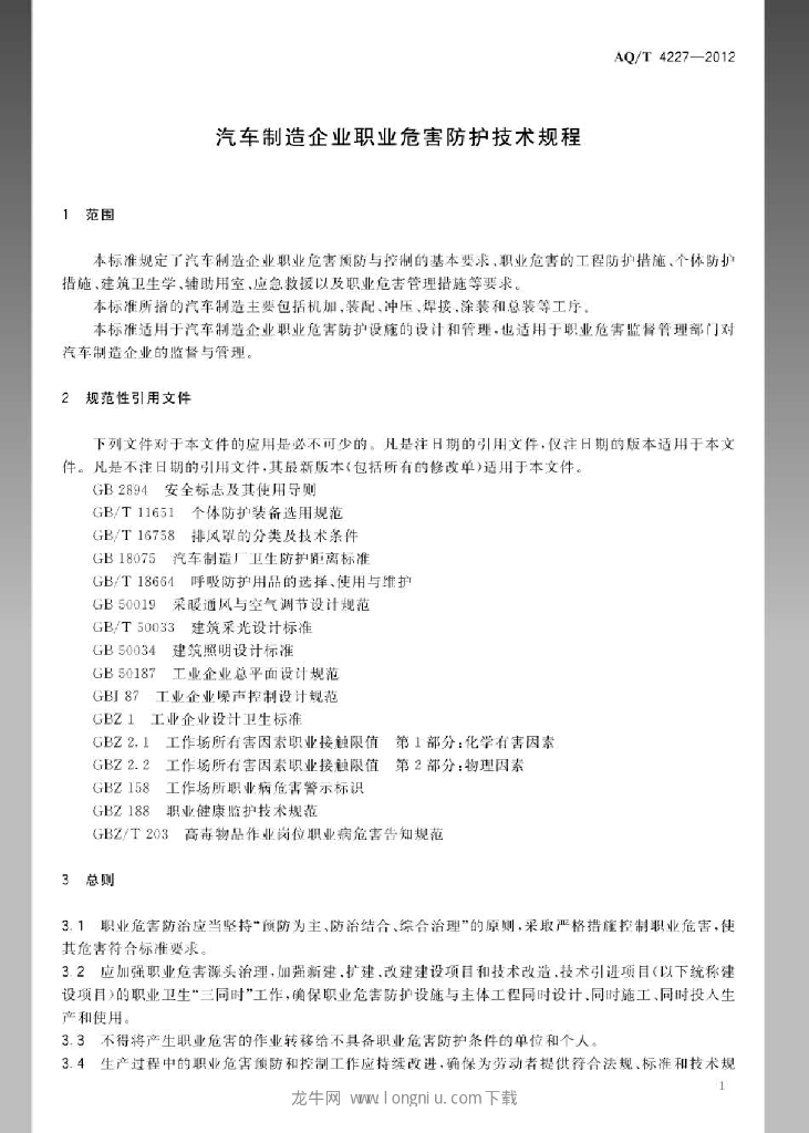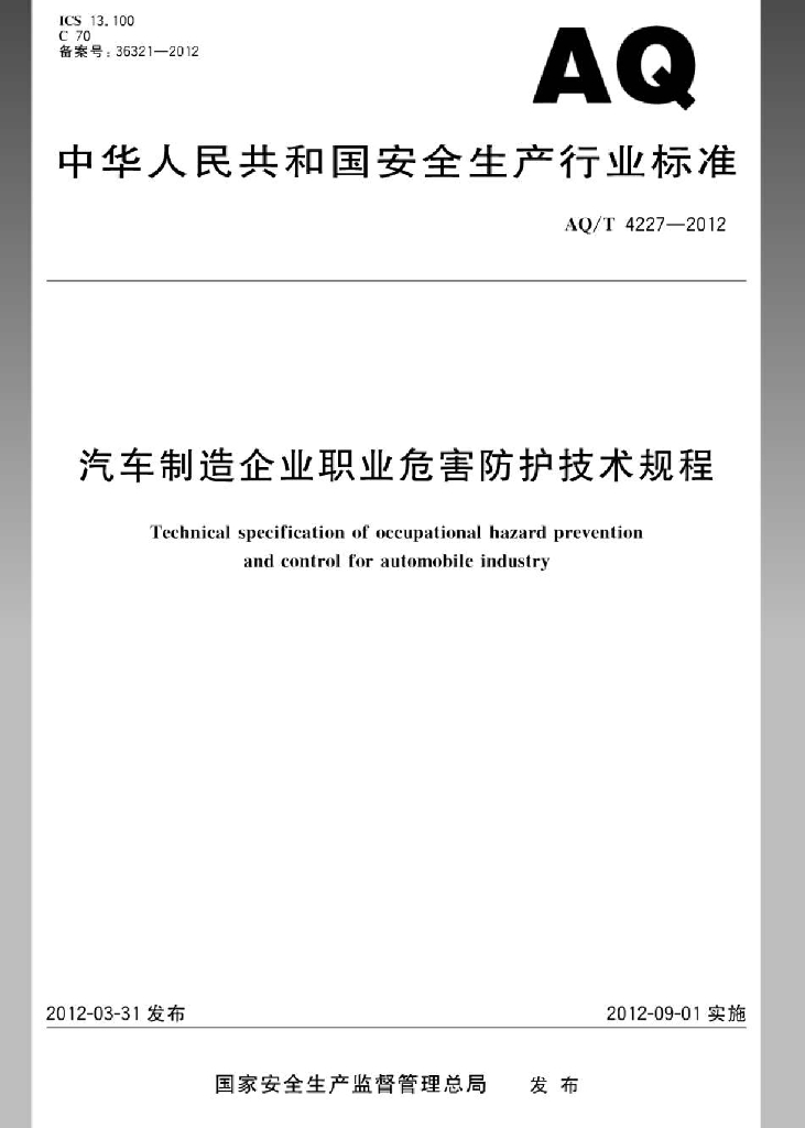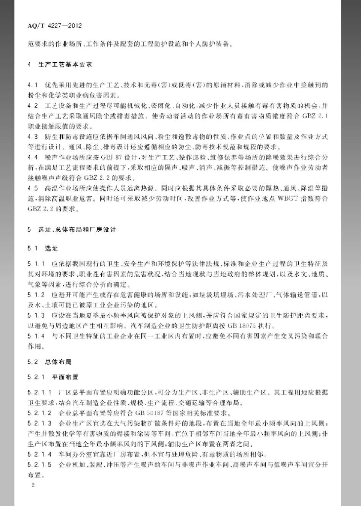 AQ/T 4227-2012 汽车制造企业职业危害防护技术规程