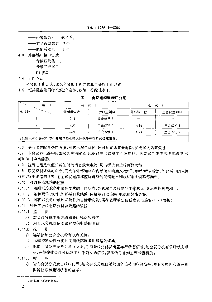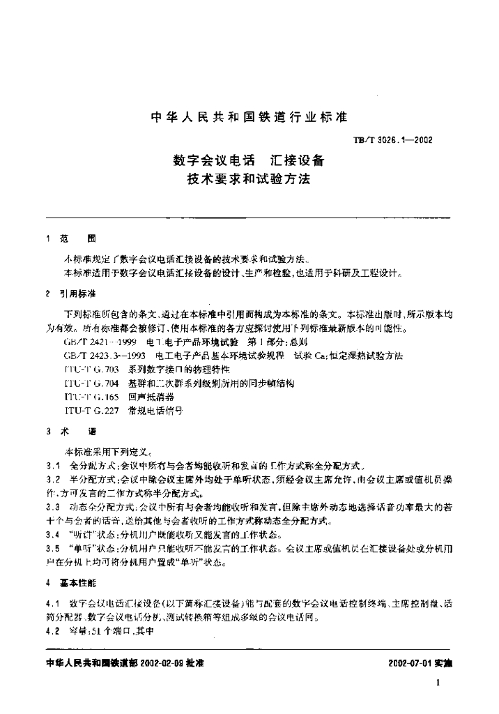 TB/T 3026.1-2002 数字会议电话汇接设备技术要求和试验方法