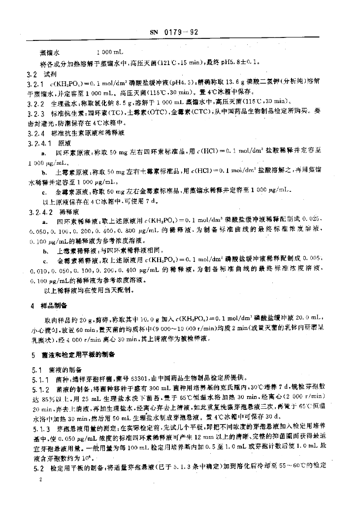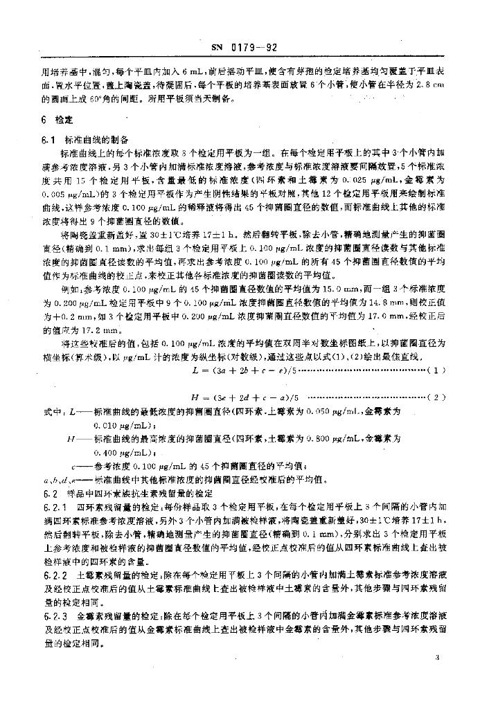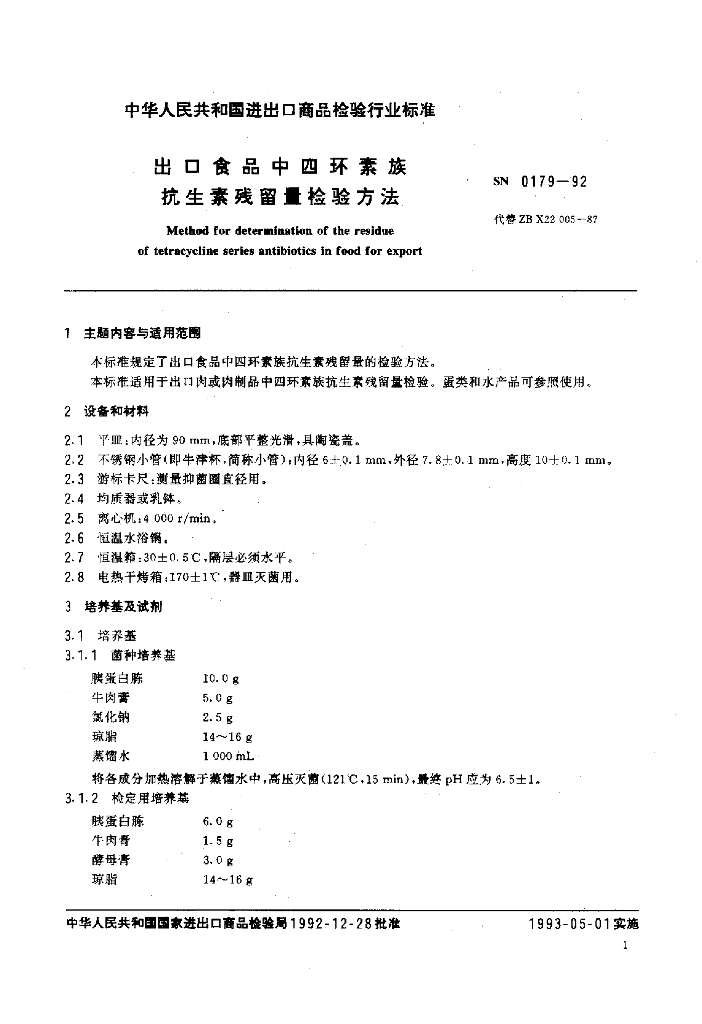 SN 0179-1992 出口食品中四环素族抗生素残留量残留量检验方法